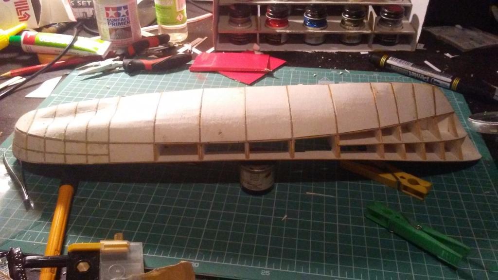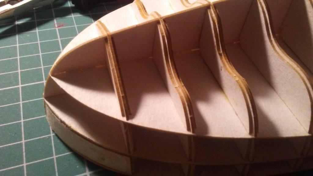 Szkielet - wręgi cięte laserowo. Ciekawa technika narzucona przez autora to wręgi podposzycia, które podtrzymują podposzycie.