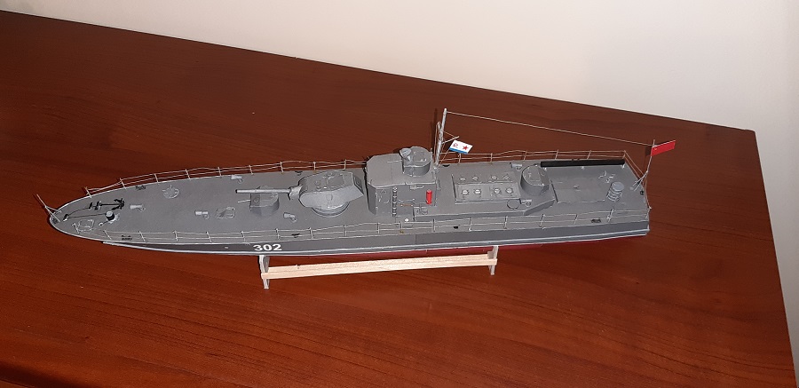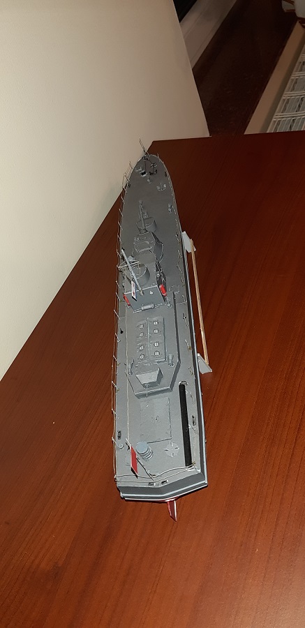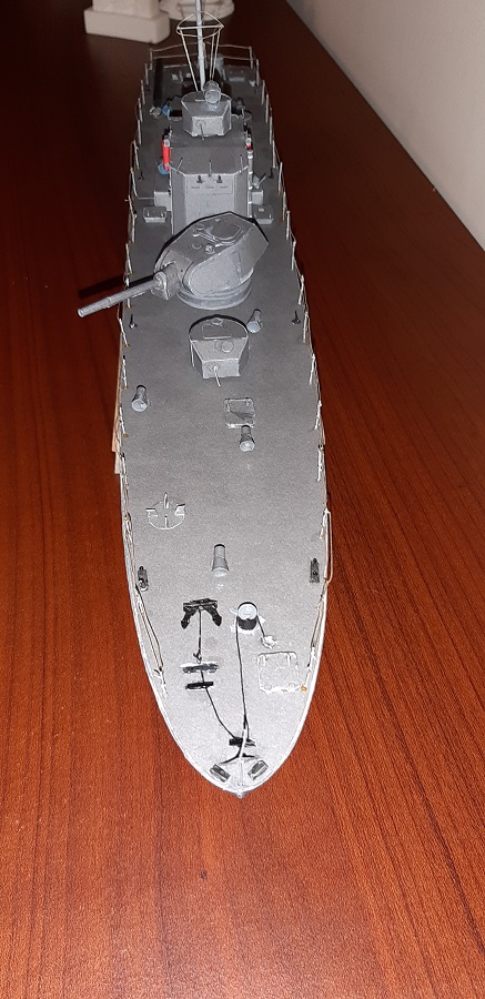 Oto i ukończyłem swój 1 model KARTONOWY NA POWAŻNIE. zadowolony jestem z niego tak średnio. Do połowy mi jakoś szło, a i efekt był dla zadowalający, ale końcówka począwszy od kotwicy to była męczarnia, stąd też taki ogólny efekt. Najbardziej jestem zniesmaczony wyglądem relingów.... No ale cóż, 1 model taki być musi Big Grin