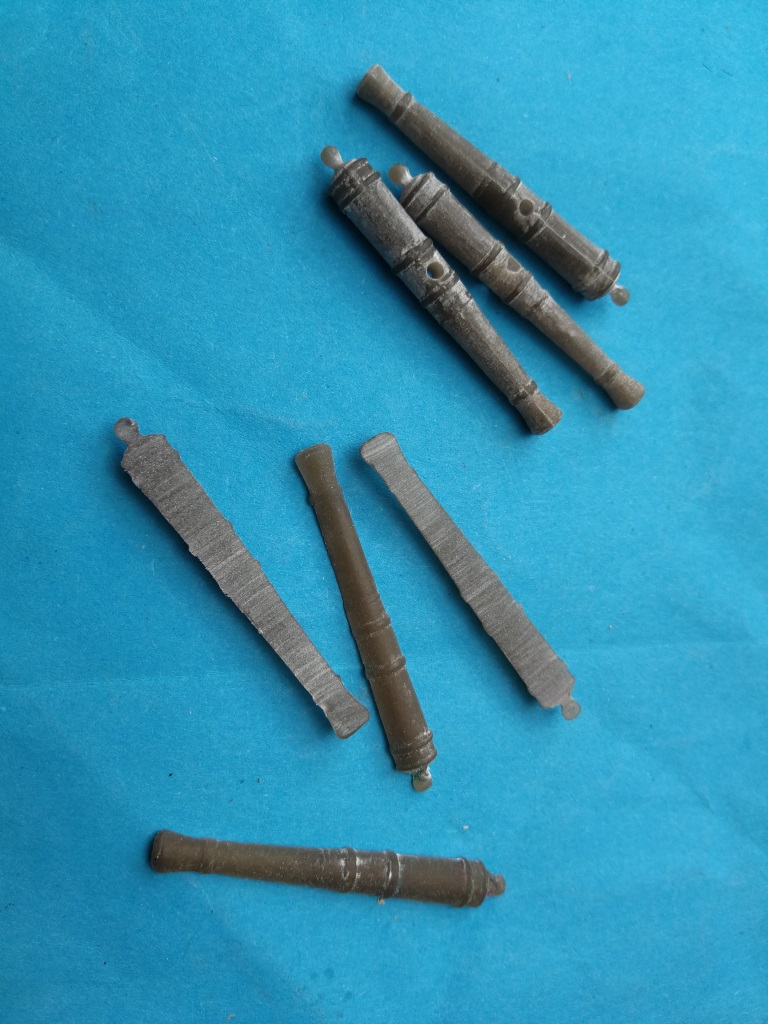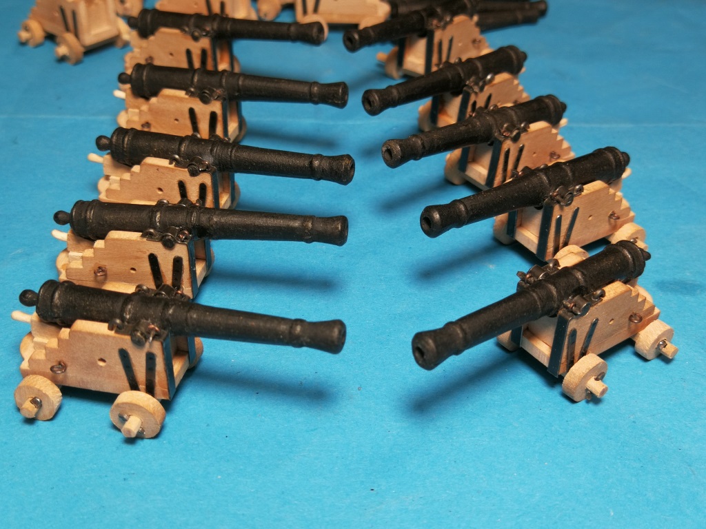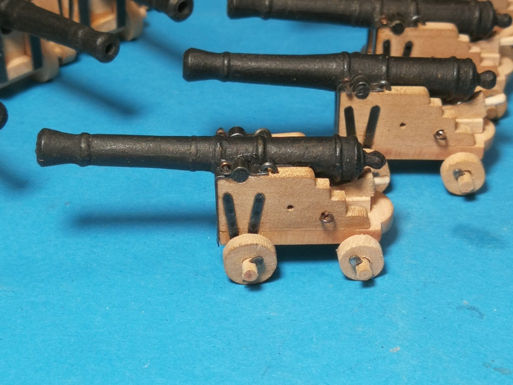 Armaty które będą na głównym pokładzie poskładane i teraz trochę poczekają na zamontowanie. Podobnie jak w Smoku zrobiłem je wcześniej, żeby łatwiej było ustalić wysokość otworów w burtach i dokonać ewent korekt.