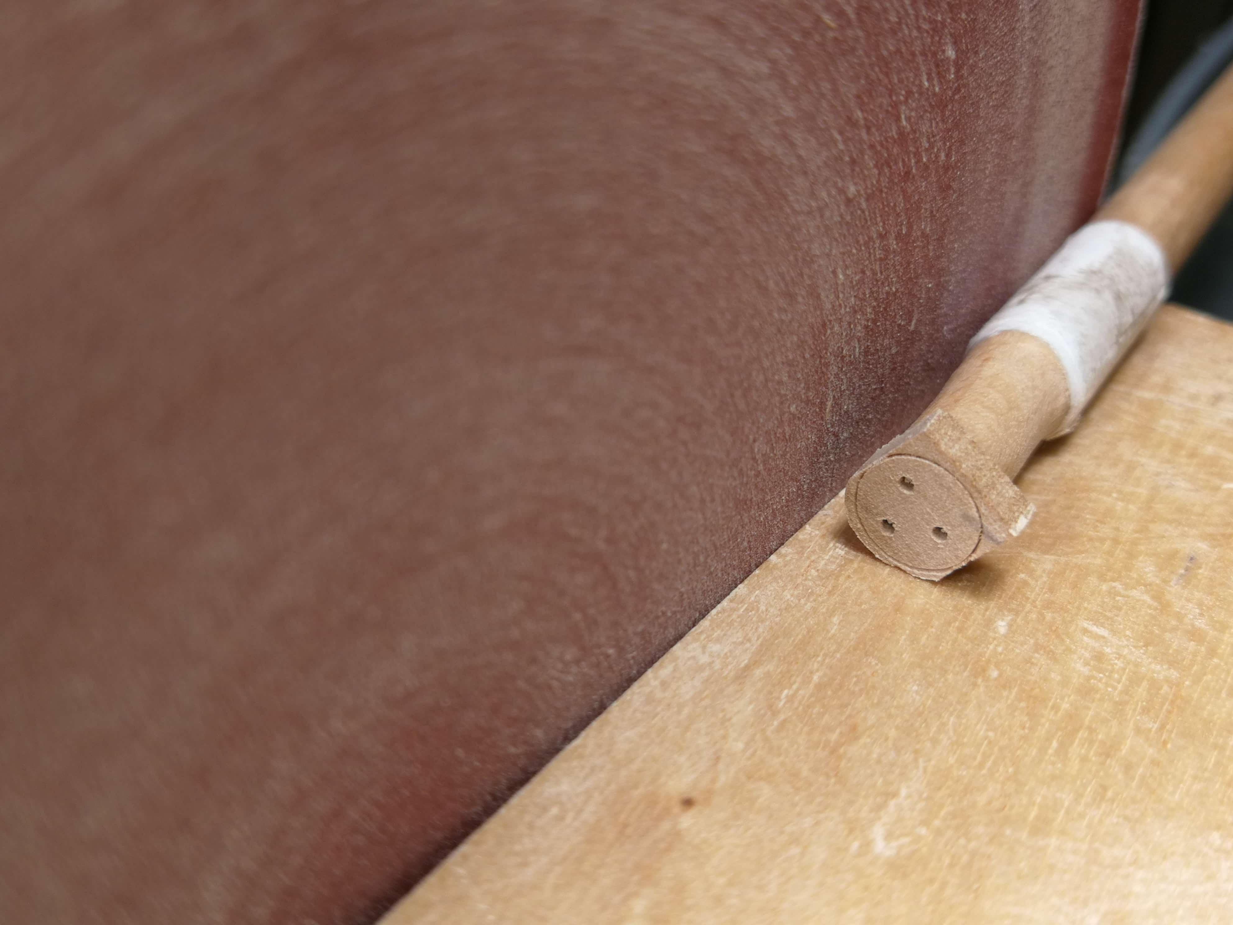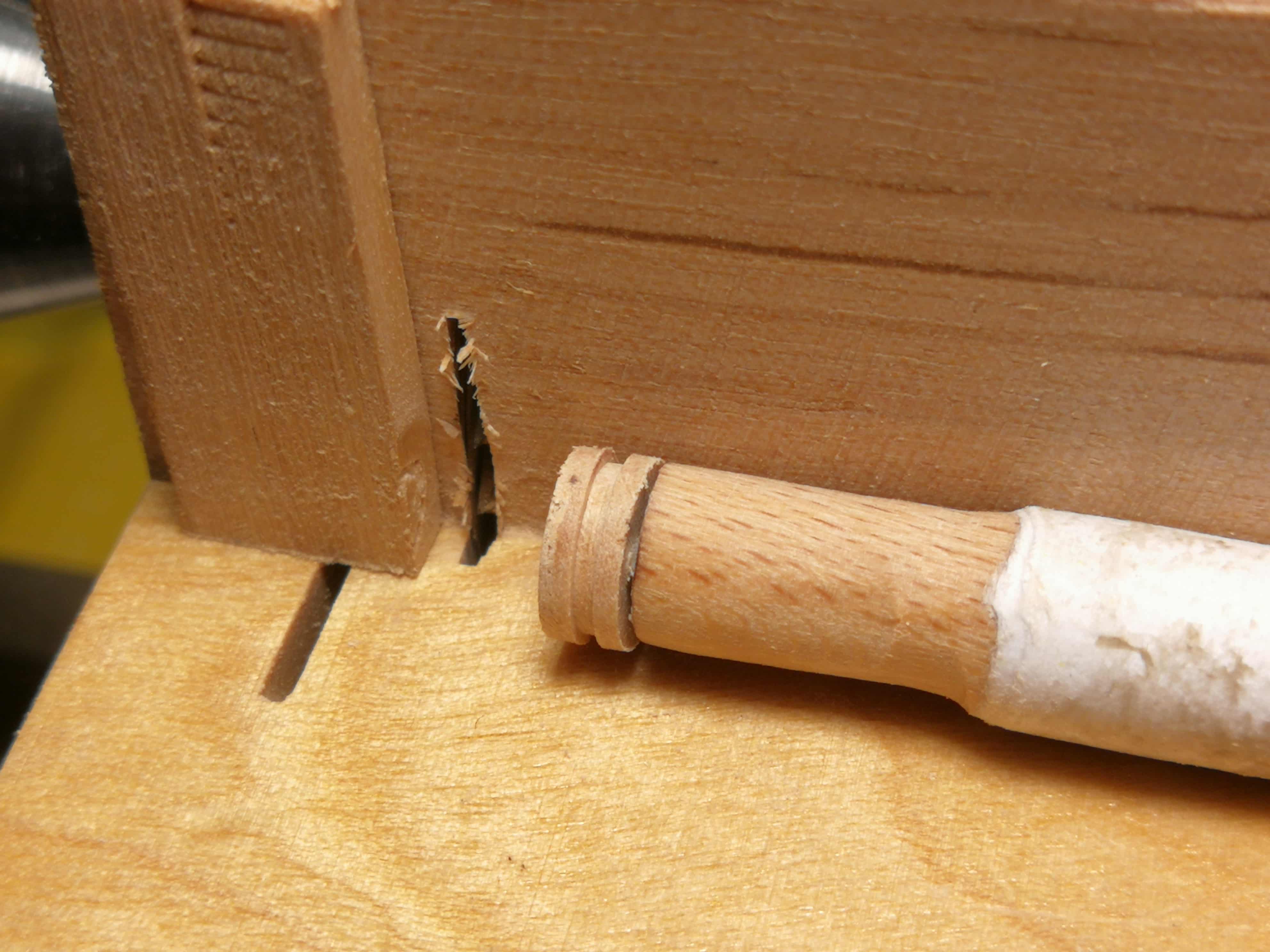 3. Wykonanie rowka pomiędzy otworami - zacząłem kombinować z frezowaniem, ale za dużo kręcenia i czasu. Szybciej można to wyciąć skalpelem lub takim przygotowanym dłuteczkiem z kawałka ostrza.