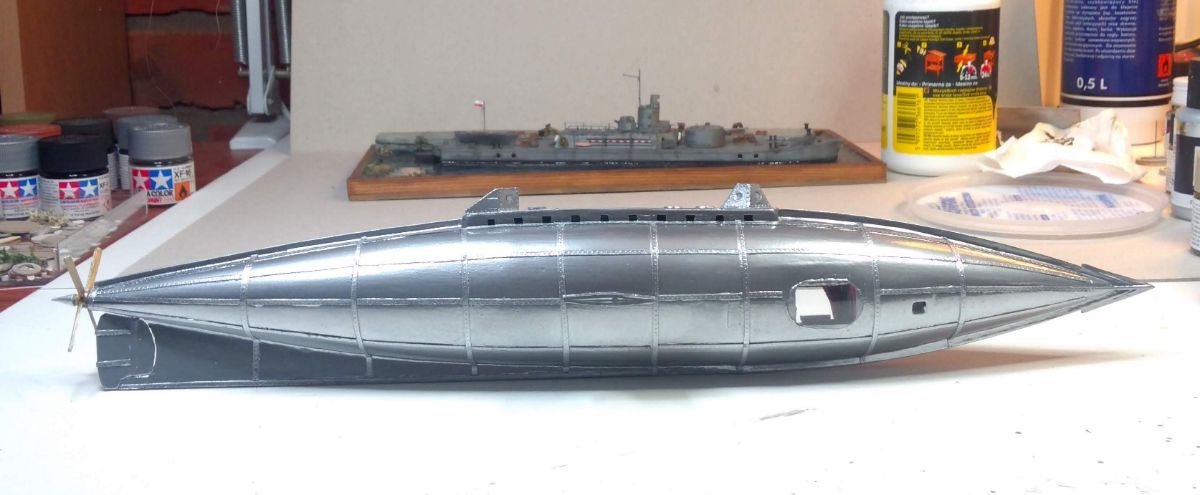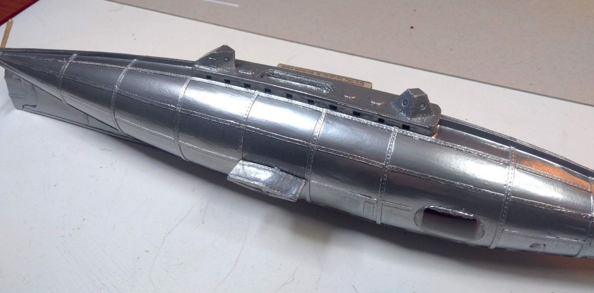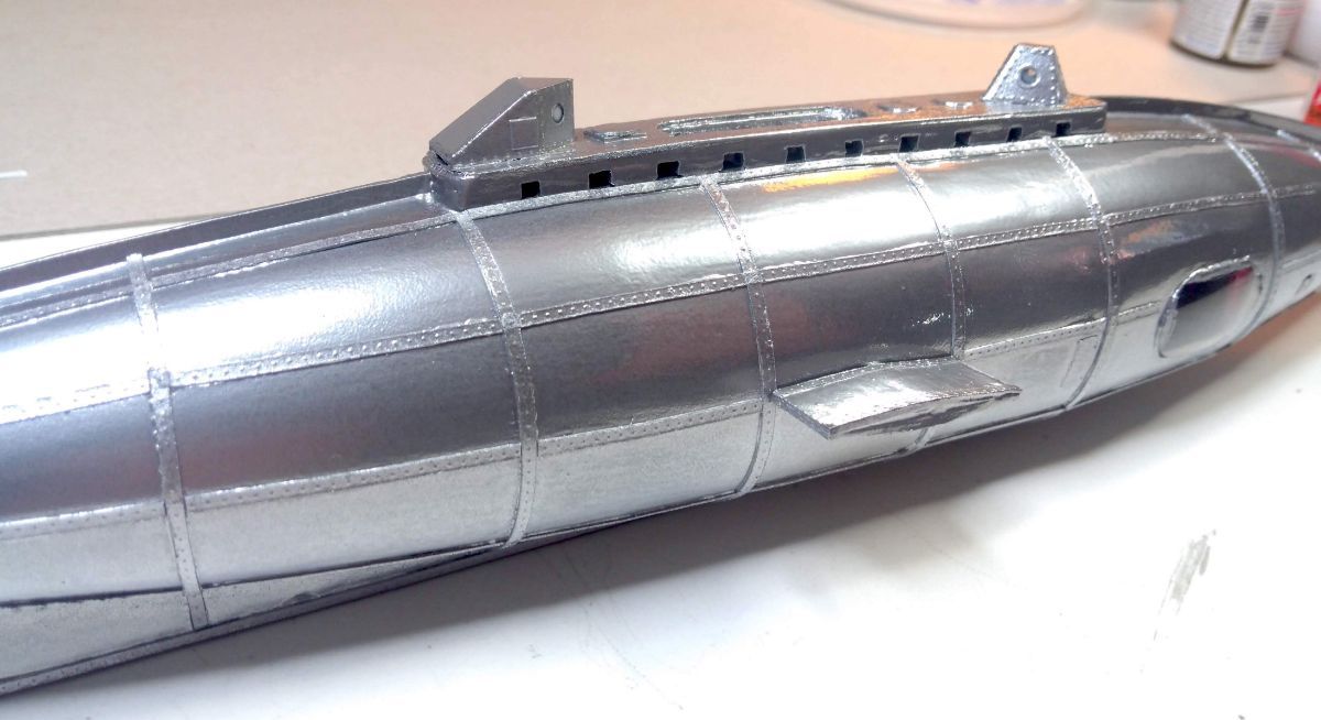 No i dalsze prace, malowanie srebrną farbą, tu zacząłem się zastanawiać jak wykonać poszycie, nitowania itp.