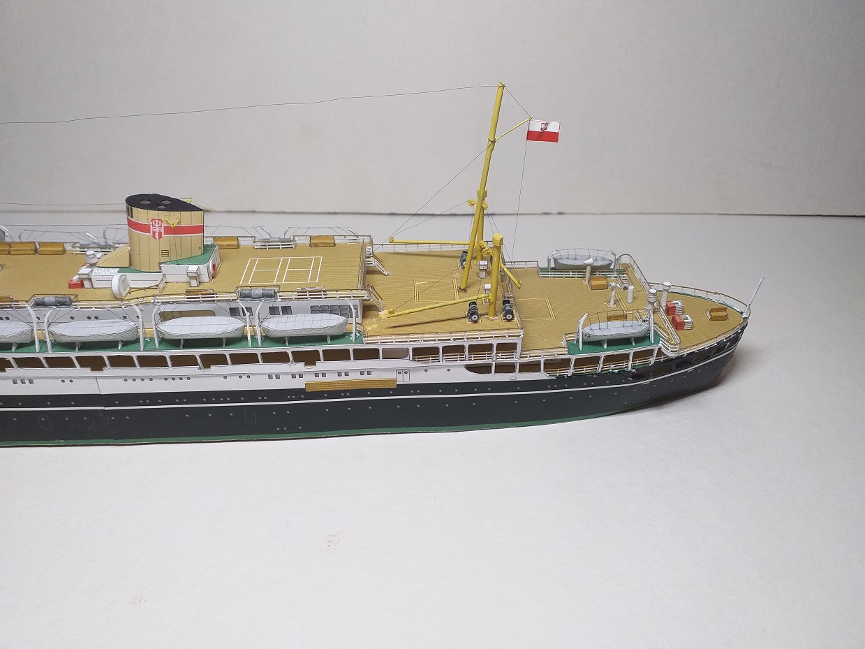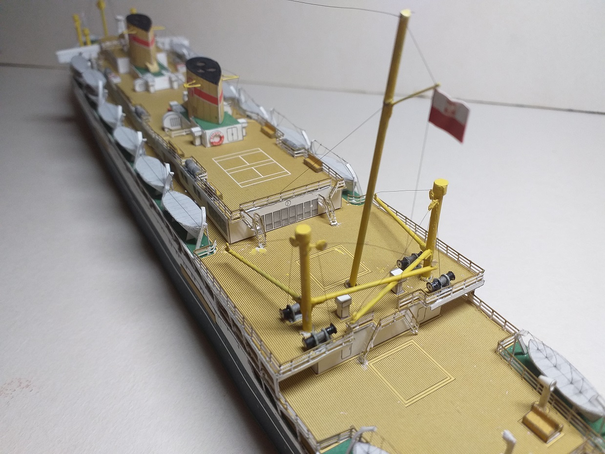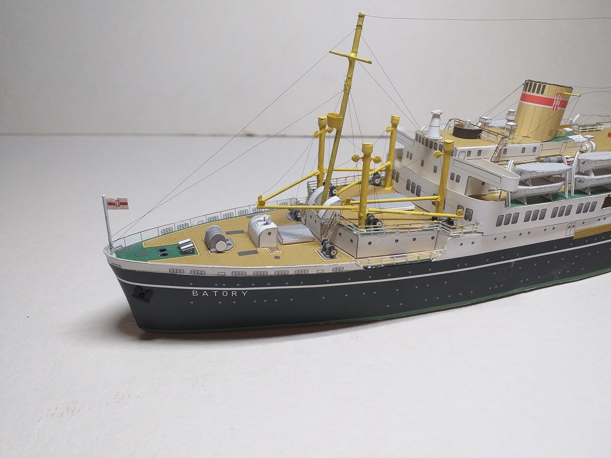 Witam, chciałbym pokazać model który był zaczęty kiedyś a niedawno skończony. Jest to model polskiego statku pasażerskiego M/S Batory z wydawnictwa JSC 14, skala 1:400, autorem opracowania jest Jan Schmidt, znany też pewnie z licznych planów modelarskich. Do modelu dodałem reling wycinany laserowo też z JSC, moje dzieło to bloczki przy bomach, olinowanie nie wszędzie mi wyszło ale już tak zostawiam, łańcuch kotwiczny będzie jak dokupię gotowy, zapraszam do galerii.