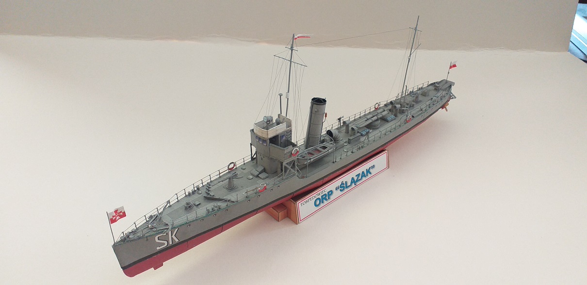 Kolejnym modelem budowanym bez żadnej relacji jest jak w tytule, torpedowiec ORP Ślązak, autorem opracowania jest Grzegorz Nowak. Model fajny, mały i przyjemny w sklejaniu. Zapraszam do skromnej galerii.
