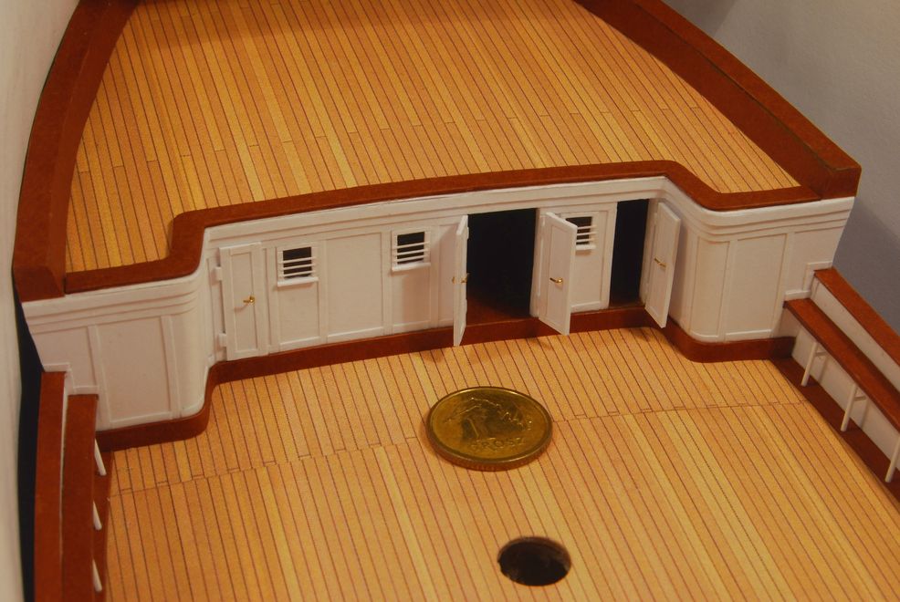 Druga nadbudówka w kierunku rufy. Deski boazerii są znacznie szersze od tych zaproponowanych w wycinance