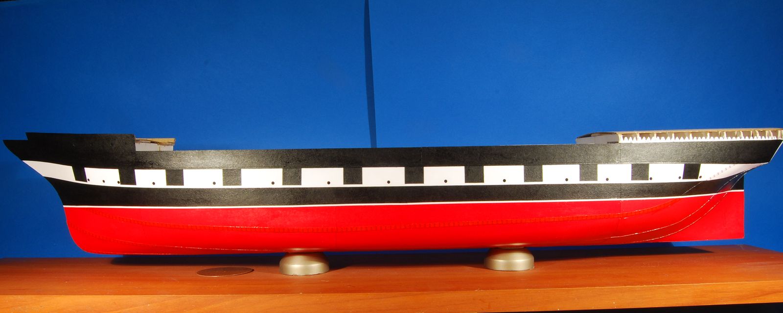 Jednocześnie podjąłem decyzję o wykonaniu jednej burty w malowaniu "Nelsona" czyli czarno-białym z imitacją ambazur.