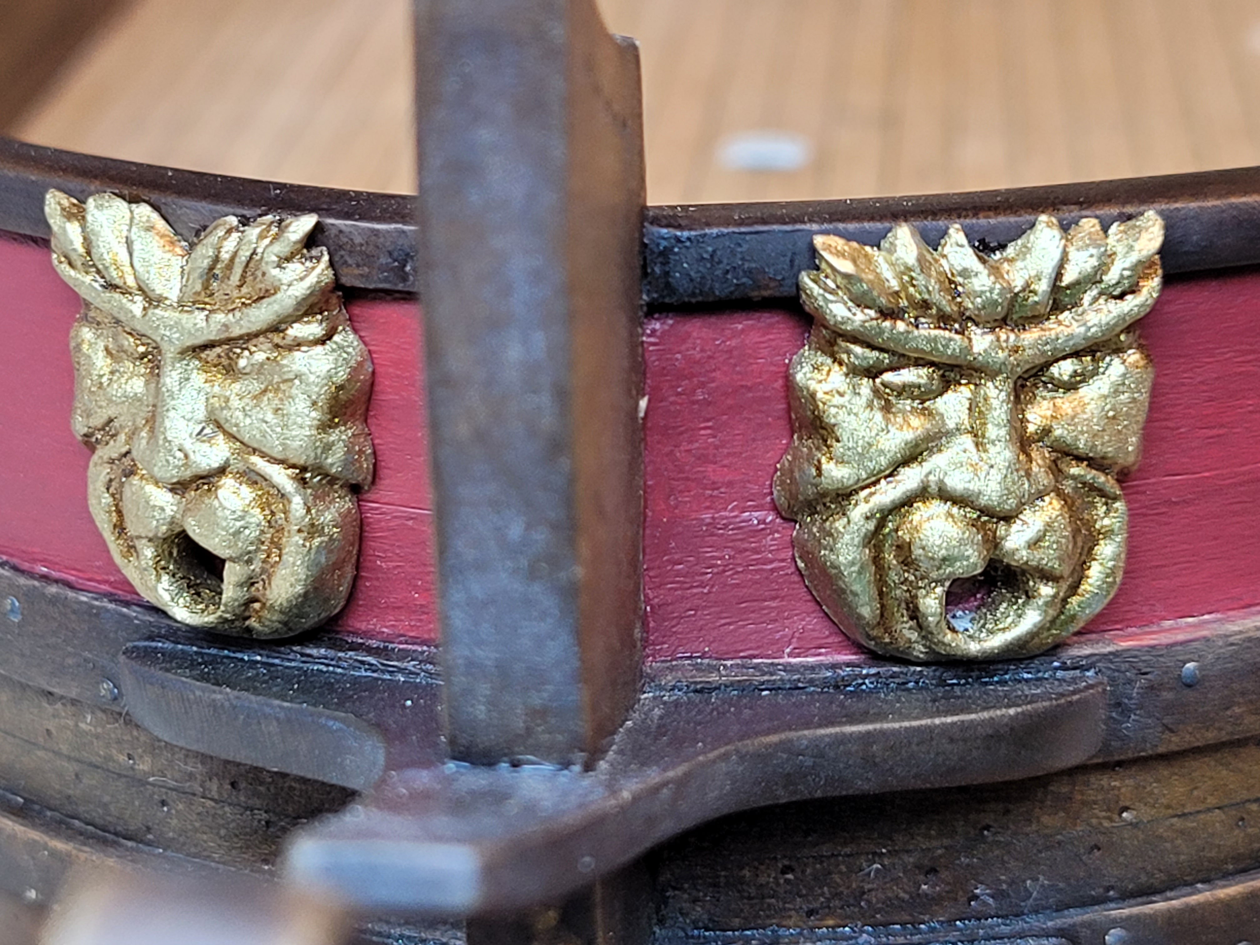 Ciąg dalszy zabawy z ozdobami. Tak jak poprzednio wzór z modeliny i następnie odlewy żywiczne. Przez mordki na dziobie będą przechodziły liny kotwiczne.