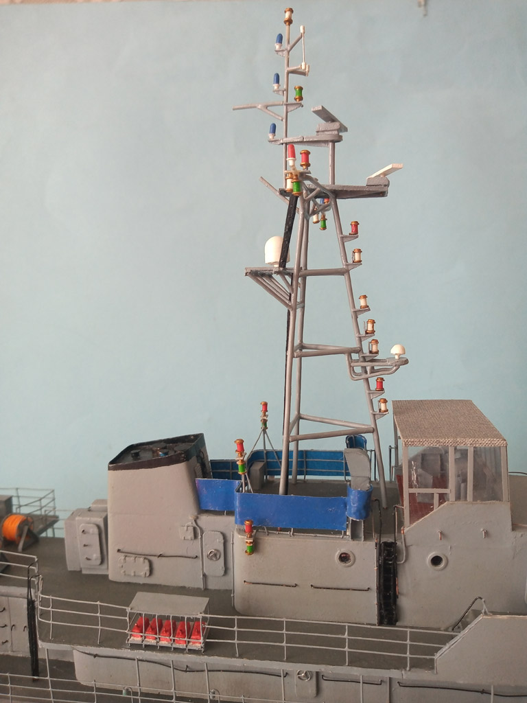 Na "choince " zamontowane światełka - brak jeszcze antenek ( 2 szt) ale nie wiem jak zrobić . Na dziobie troche przybyło i poprawiony reling