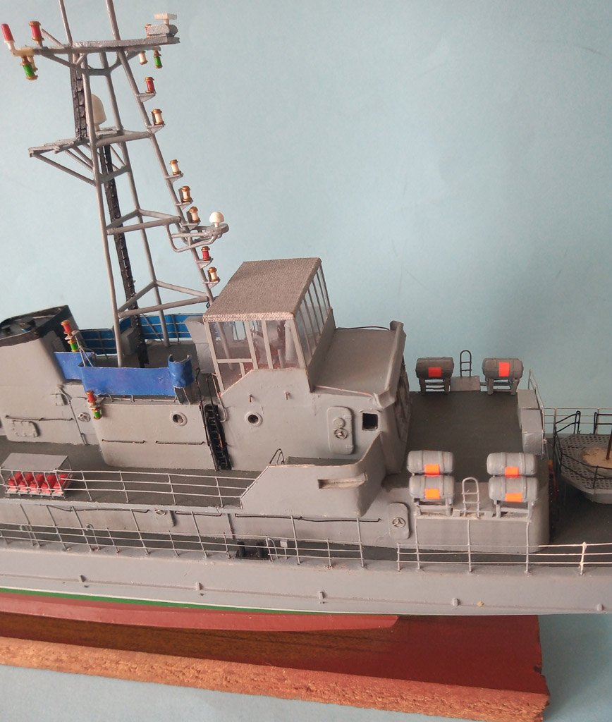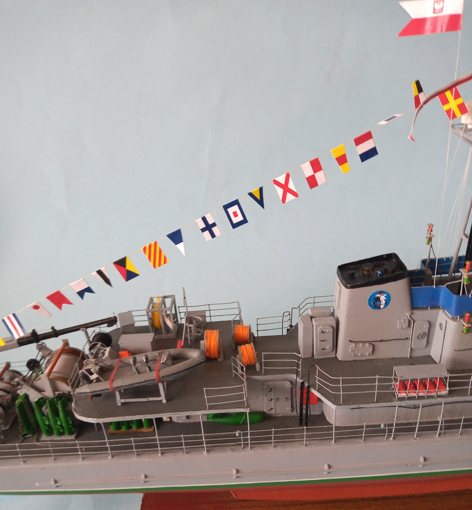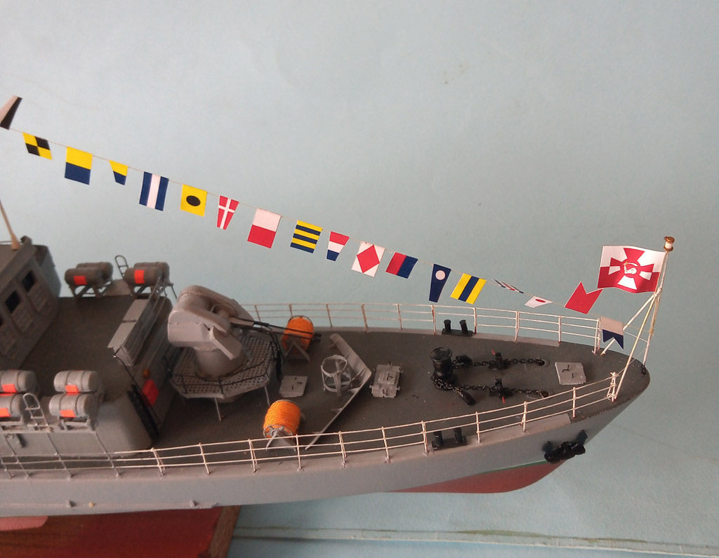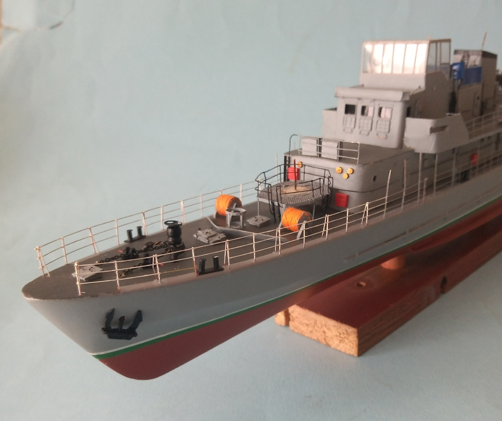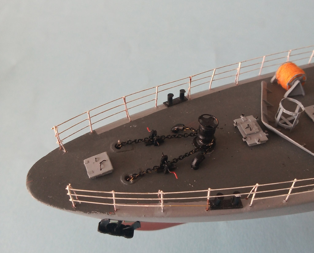 Na "choince " zamontowane światełka - brak jeszcze antenek ( 2 szt) ale nie wiem jak zrobić . Na dziobie troche przybyło i poprawiony reling