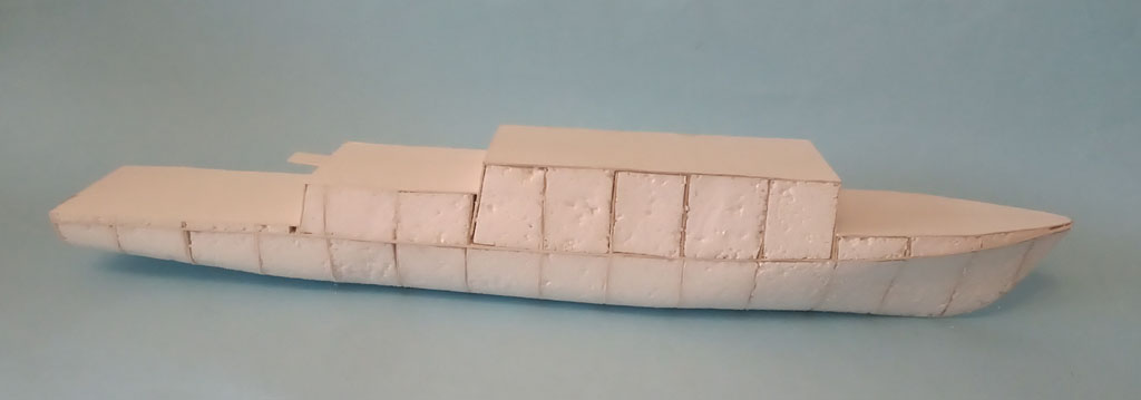 Na podstawie fotek rozrysowałem kadłub i jego elementy - po złożeniu chyba przypomina jednostkę