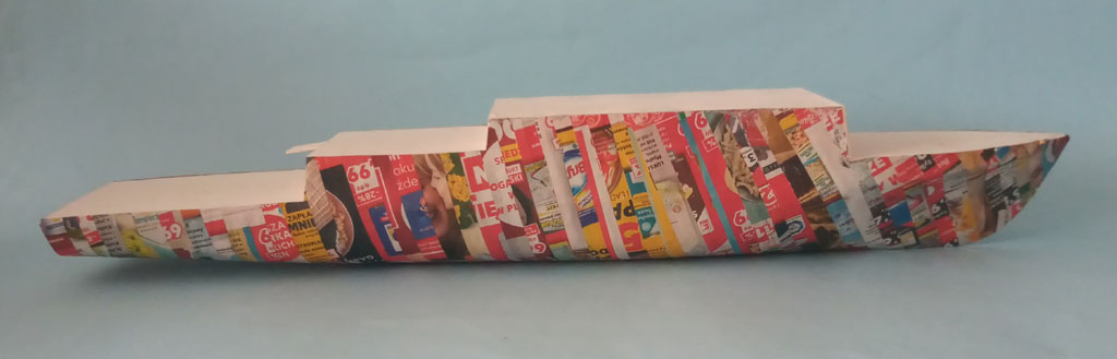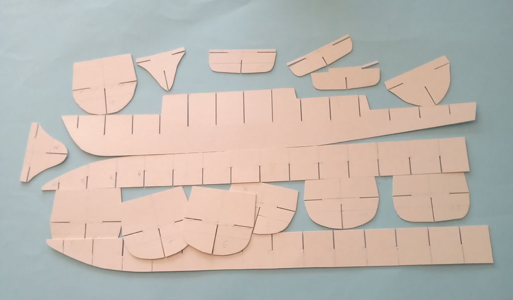 Na podstawie fotek rozrysowałem kadłub i jego elementy - po złożeniu chyba przypomina jednostkę