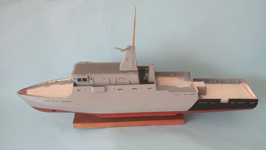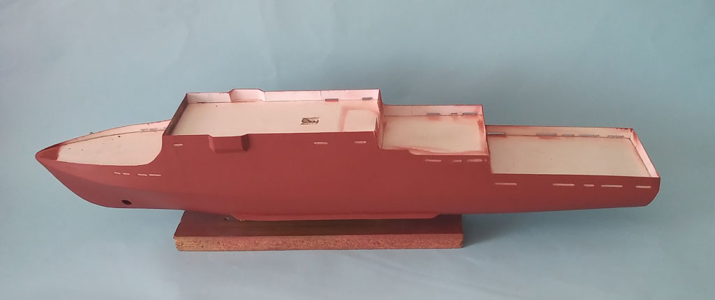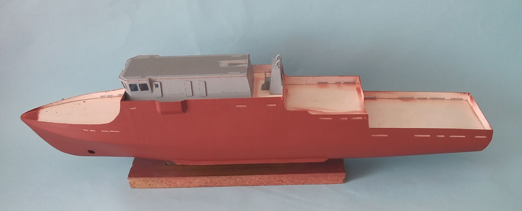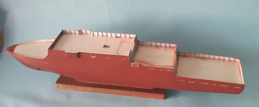 Trochę było zabawy z kadłubem ale już pryśnięty podkładem . Nadbudówka postawiona tylko do fotki jak będzie wyglądała . Pobawiłem się z następnym elementem Do następnego spotkania