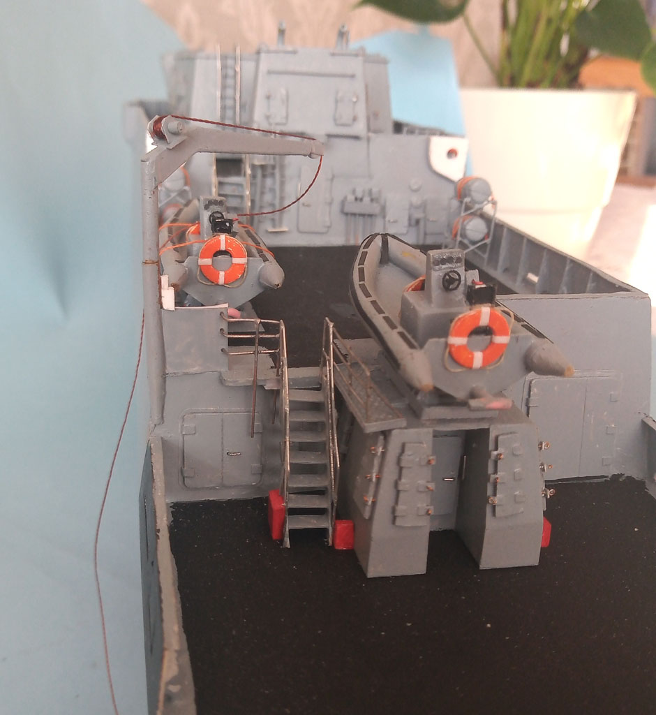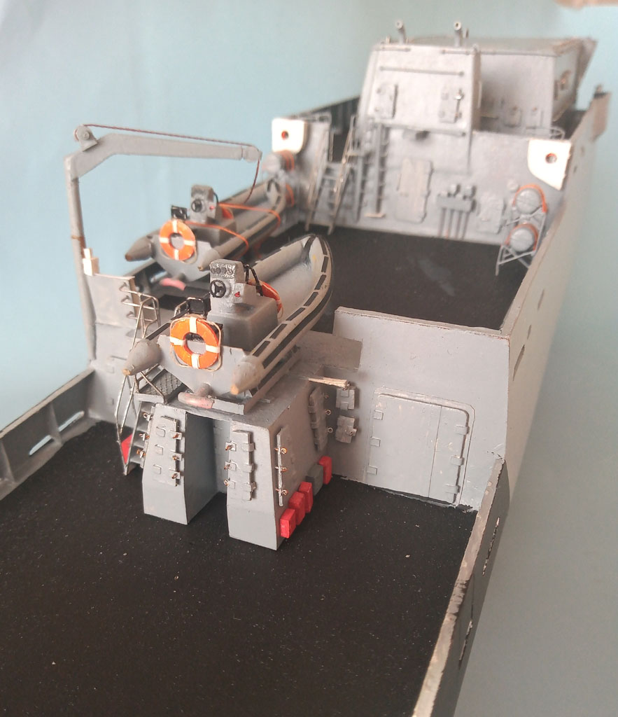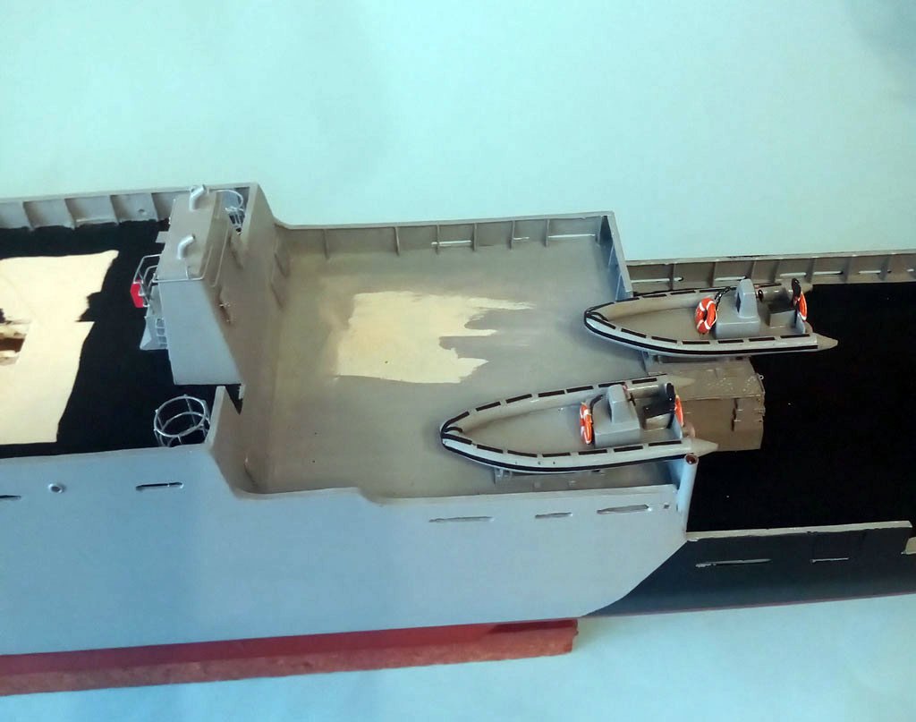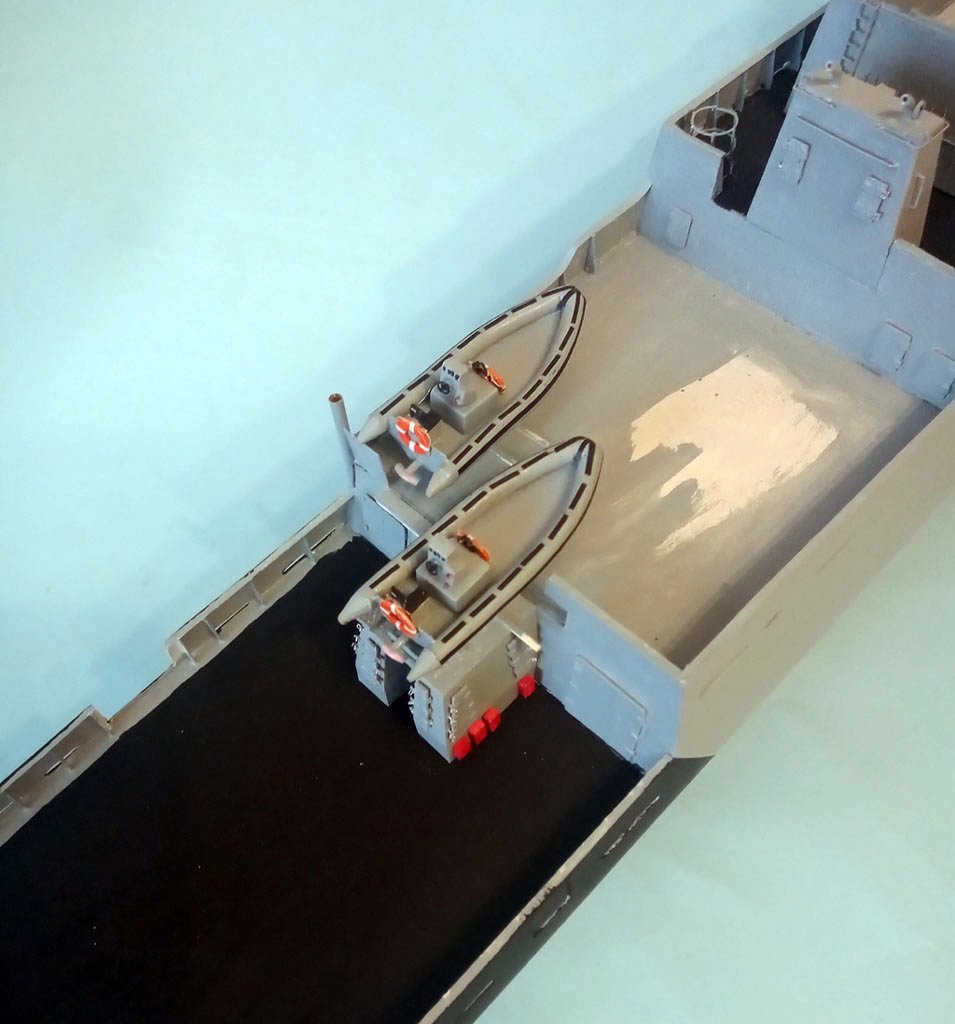 Trochę drobiazgów zrobionych - przyklejone do kadłuba . Zmęczyłem łodzie pontonowe i podstawki do nich . Łodzie postawione do fotki Do następnego spotkania