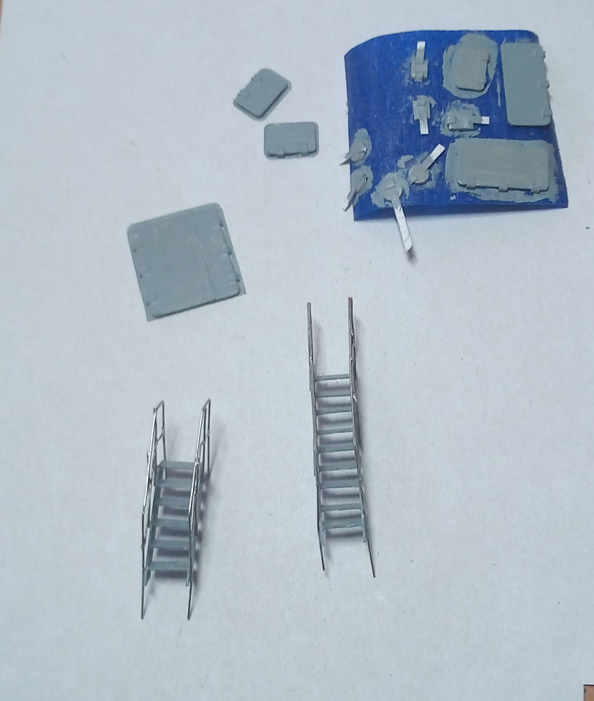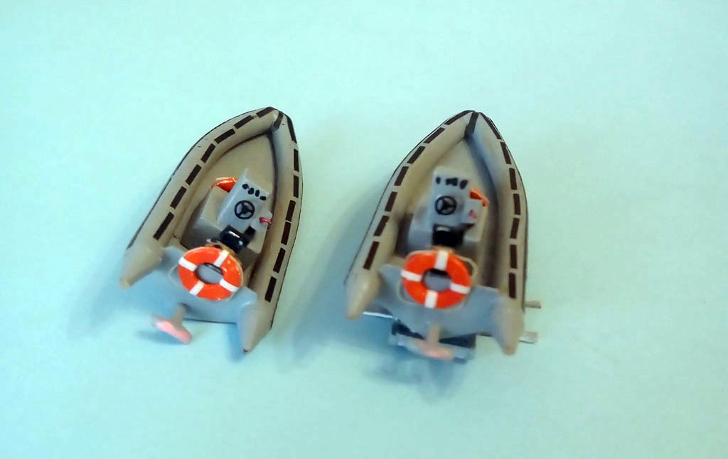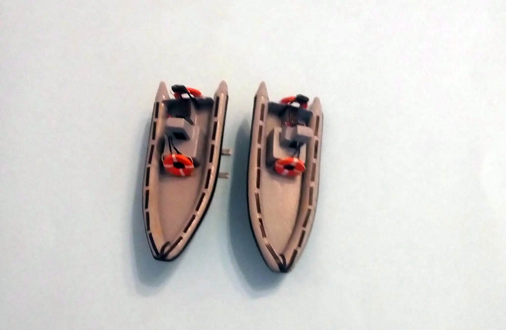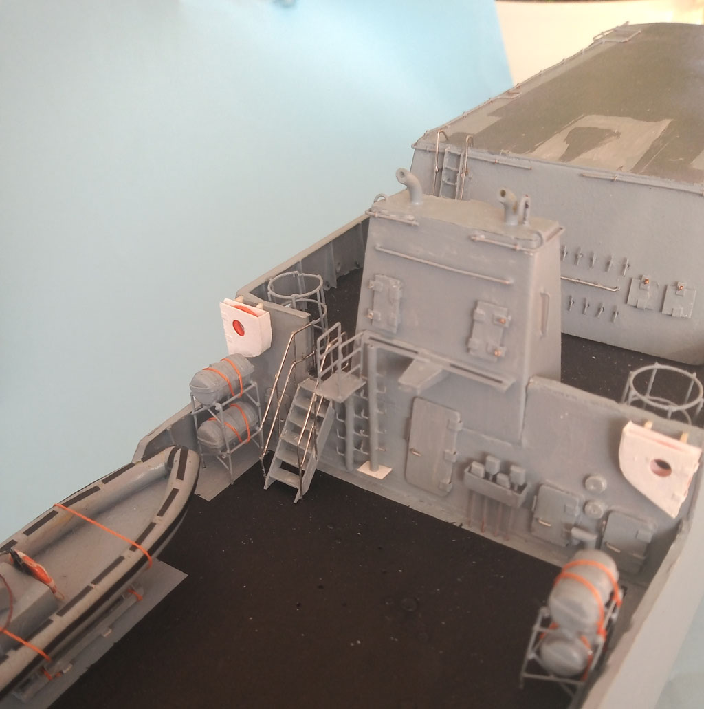 Trochę drobiazgów zrobionych - przyklejone do kadłuba . Zmęczyłem łodzie pontonowe i podstawki do nich . Łodzie postawione do fotki Do następnego spotkania