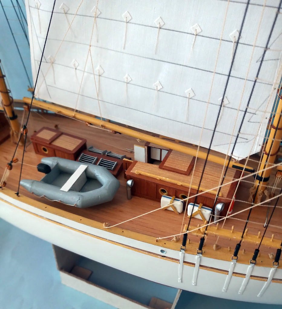Udało się zamocować wszystkie żagielki choć nie tak jak chciałem ( panuje flauta ) . Teraz będę musiał uzupełnić brakujące elementy na pokładzie