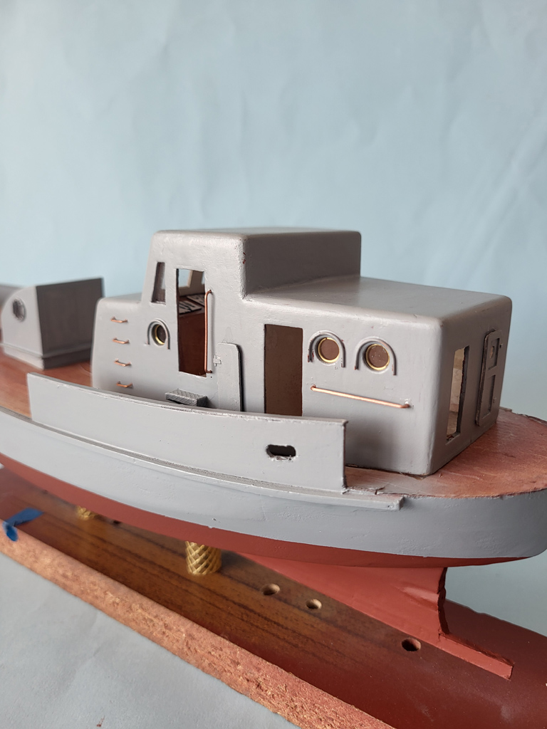 Dalsza zabawa z modelem . Trochę w sterówce zrobiłem zegary i koło sterowe aby nie było tak pusto . Dorobiłem nadburcie i szykuje do malowania . Nadbudówka tylko ustawiona do fotki