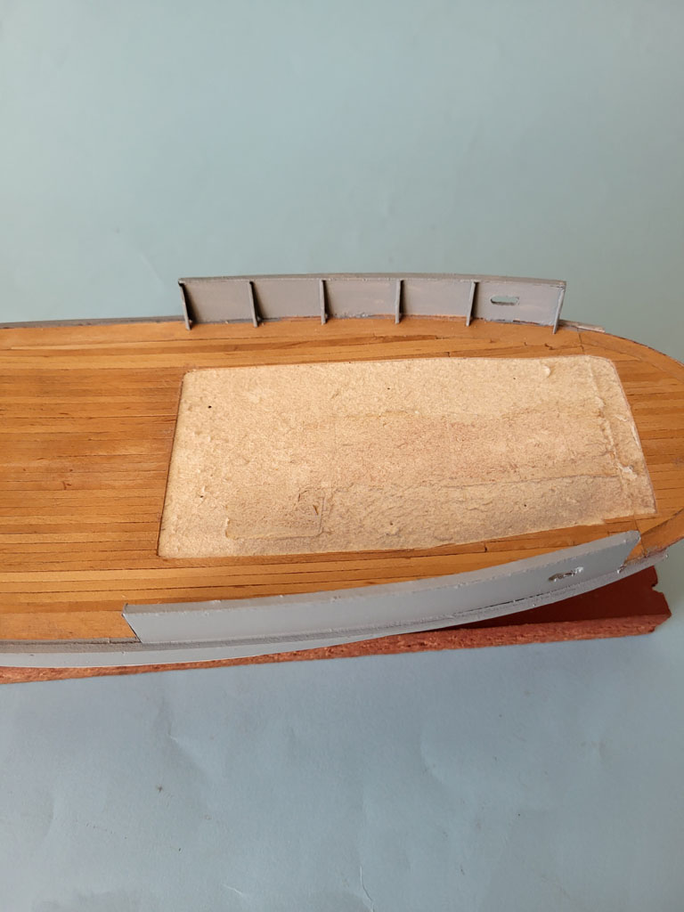 Dalsza zabawa z modelem . Trochę w sterówce zrobiłem zegary i koło sterowe aby nie było tak pusto . Dorobiłem nadburcie i szykuje do malowania . Nadbudówka tylko ustawiona do fotki do następnego spotkania