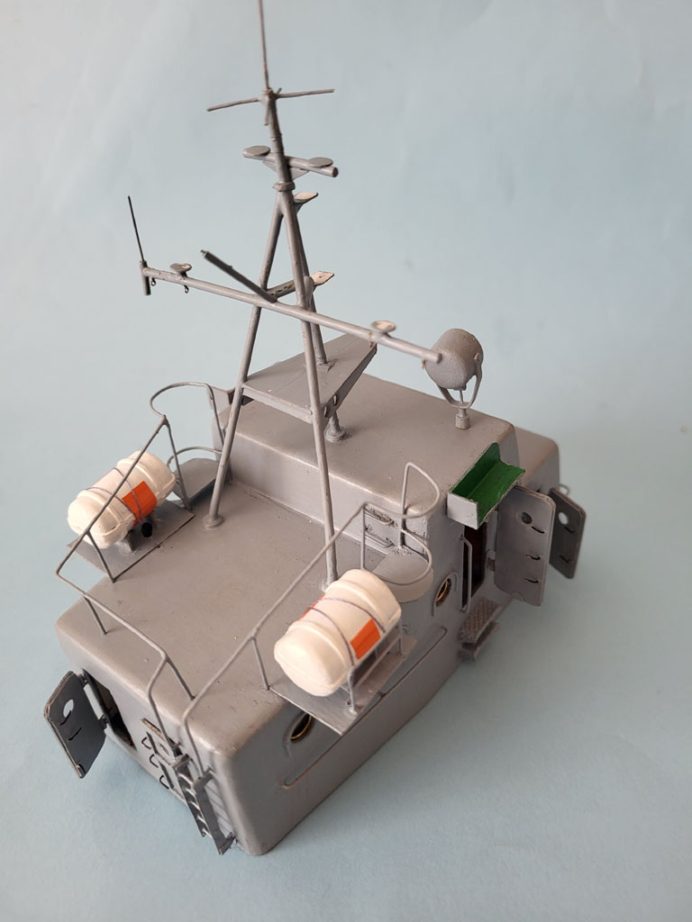 Trochę czasu upłynęło trzeba coś pokazać . Z jednej strony jest kuchnia to trzeba było dorobić "kibelek" Porobiłem wsporniki nadburcia oraz zamontowałem drzwi i osłony światła pozycyjnego . Zaczęta "choinka" (postawiona tylko do fotki) do następnego spotkania