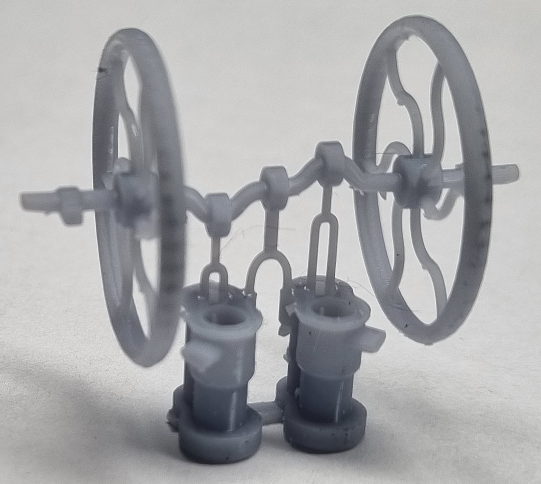 Koła sterowe i pompa zęzowa to precyzyjne wydruki 3D (Adrian – dziękuję) zaprojektowane w blenderze.