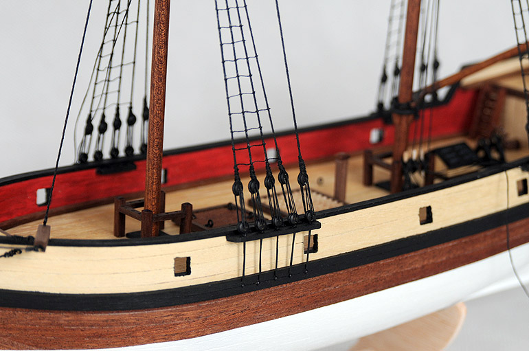 A to się uśmiałem, ale oczywiście sam z siebie. Tak się składa, że używam bloków co jakiś tam czas i taka "wpadka". Teraz będą te bloczki mnie denerwować :) Będę udawał że jest ok. A co do pierścieni mocujących żagiel do masztów to faktycznie powinno być więcej i jak namierzę odpowiedni drucik do dosztukuje lub wymienię wszystkie z innego materiału. Niestety w pudełku było tylko 8 sztuk.