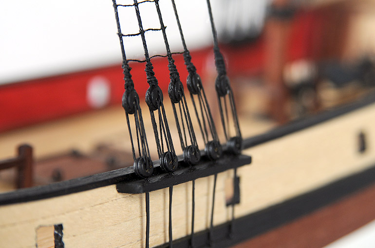 A to się uśmiałem, ale oczywiście sam z siebie. Tak się składa, że używam bloków co jakiś tam czas i taka "wpadka". Teraz będą te bloczki mnie denerwować :) Będę udawał że jest ok. A co do pierścieni mocujących żagiel do masztów to faktycznie powinno być więcej i jak namierzę odpowiedni drucik do dosztukuje lub wymienię wszystkie z innego materiału. Niestety w pudełku było tylko 8 sztuk.