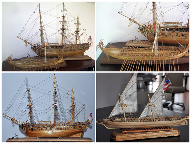 Mam na imię Wiesław, 66 lat, na emeryturze. Modelarstwem zajmuję się od 56 lat, zacząłem jako 10latek. Modeluję głównie dla przyjemności, wcześniej gdy pracowałem na statku - aby szybciej zleciał czas na morzu :) Wiele modeli statków rozdałem jako prezent wśród rodziny i przyjaciół, te które mam na stanie w domu, załączam do posta do wglądu :) Wśród modeli jakie "popełniłem" są: Endeavour, Puritan, Enterprise, Royal Caroline, dżonki chińskie, galera grecka, łódź do połowu wielorybów, American gunboat, Santa Maria, Santa Lucia, holenderski bark oraz wiele modeli mniejszych w butelkach i kolbach (żona pracowała w laboratorium :) ) Robię głównie drewniane modele statków z gotowych zestawów firm takich jak Mamoli, Amati, Panart, Mantua czy Artesania Latina. Robię również modele z polskich planów modelarskich.