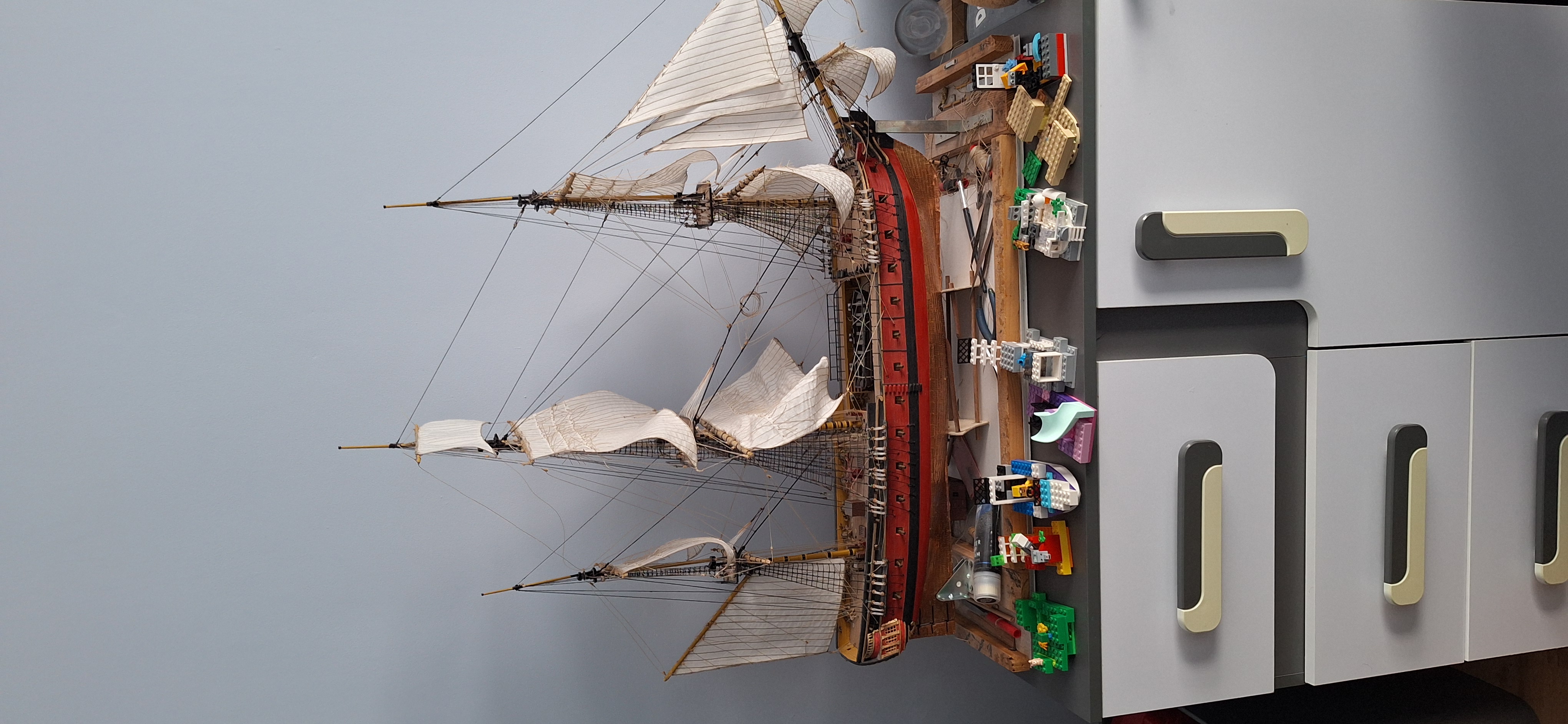 Pracowałem przy budowie hiszpańskiej fregaty Santa Leocadia. Projekt nie upadł a powiem nawet ze jest prawie ukończony. W tle powstają kolejne modele ale o tym może innym razem.