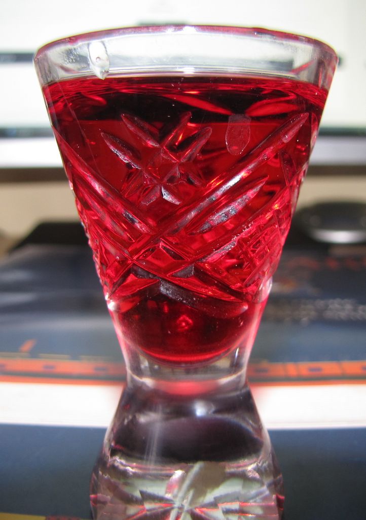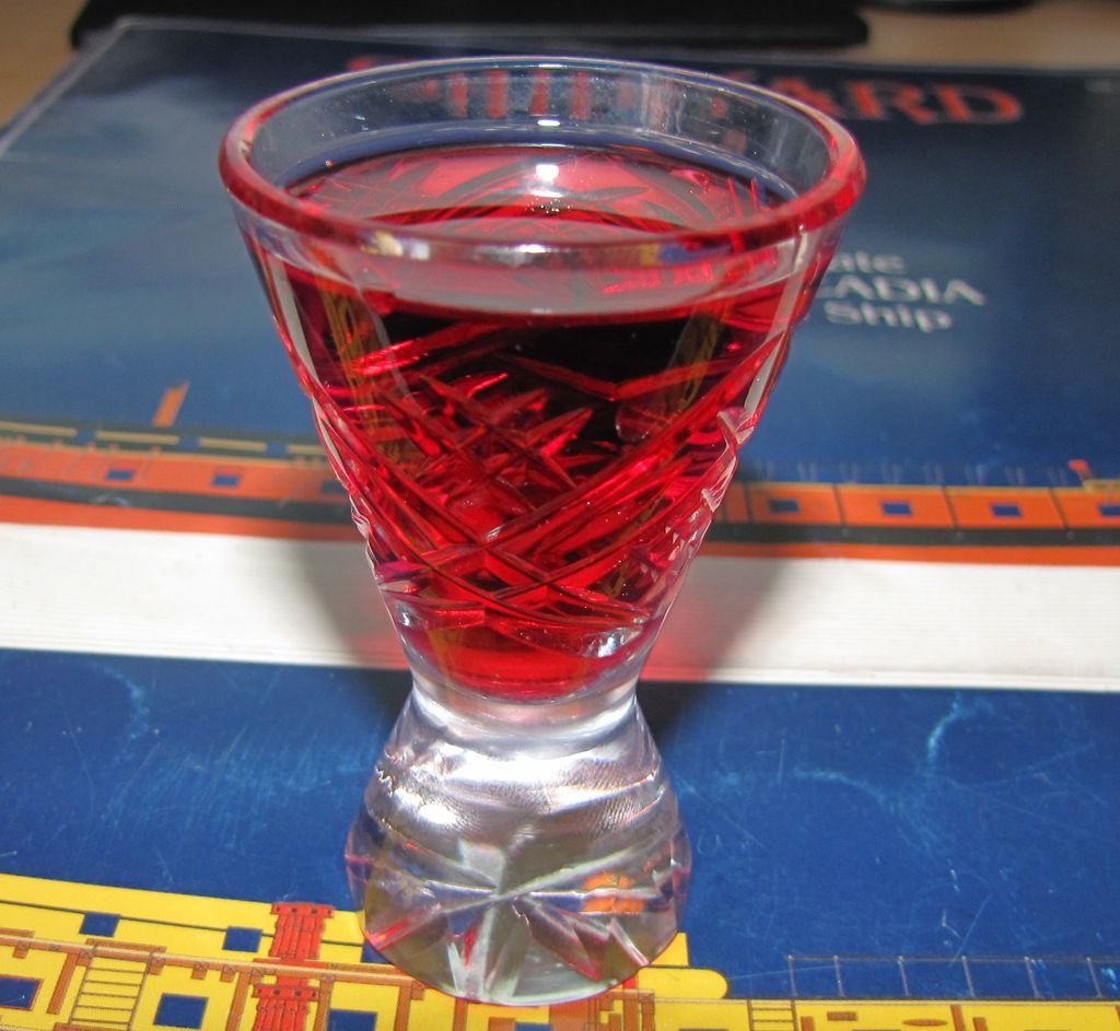 Syrop cukrowy wymieszać z sokiem, dodac spirytus, wymieszać, zalać do słoja, odstawic na 2 miesiące.