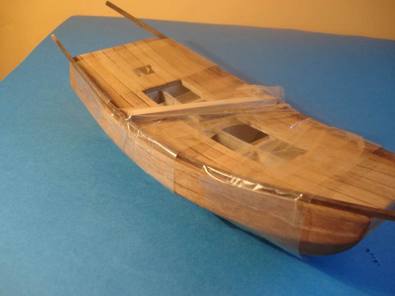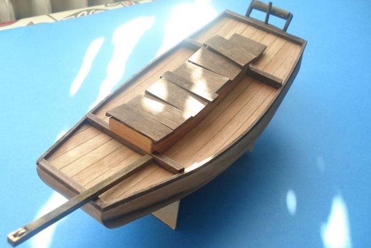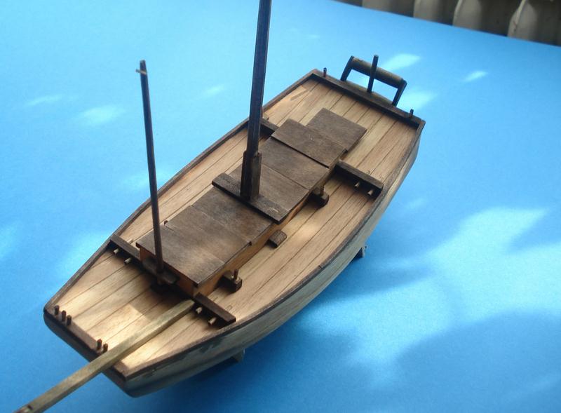 Witam wszystkich. Zamontowałem belkę do kotwicy, zrobiłem ster z forniru , maszty wytoczyłem na wiertarce, kołeczki zrobiłem z wykałaczek barwione bejcą rustykalną. Żagle na razie moczą się w herbatce. Teraz muszę wyszlifować patyczki od szaszłyków 1 mm do mocowania żagla(ciężka sprawa).