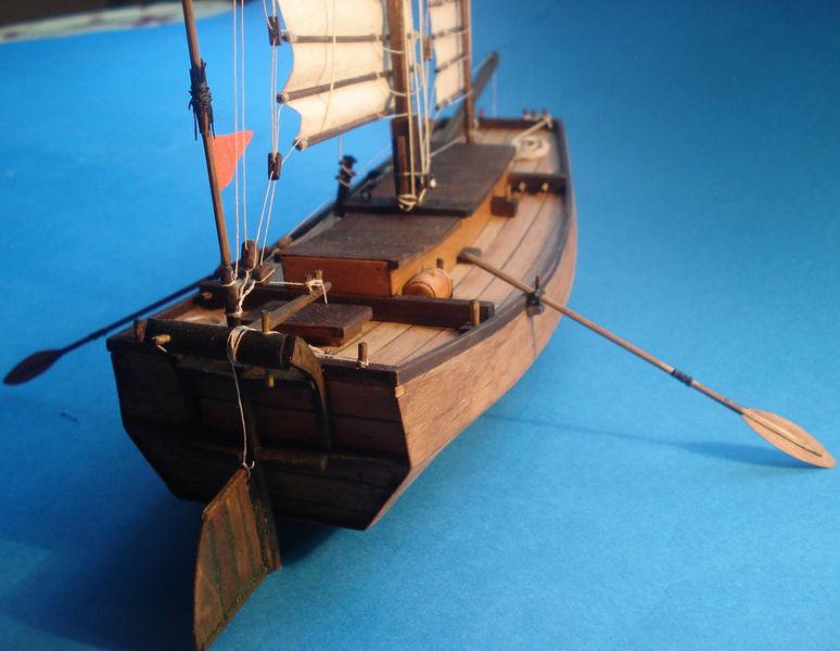 na fotce z lewej strony (na dole)pokazano dwa fał przechodzące przez maszt i dalej nie pokazano jak biegną .Nie zawsze żagiel z reją muszą być opuszczane na pokład i do tego niepotrzebne są dwa fały.Jeden fał powinien przechodzić przez bloczek w maszcie i przy rei a drugi służył do podciągania żagla do rei. Tak samo nie wiem po co jest pokazany podwójny nazwijmy" bom" i co miało za cel jego wzmocnienie.Ja do budowy poszczególnych dżonek nie mam uwag bo każdy robi jak chce - to nie jest model redukcyjny tylko rekreacyjny.