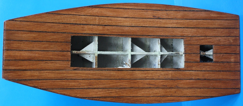 Niestety Radku dżonka nie jest równa. Widać to na poniższych fotkach. Wykonałem już drugi szkielet, ale... szkielet był równy, natomiast poszycie robione trochę inaczej niż pierwsze DO BANI - jest krzywo. Jeszcze trochę poszlifuje i... ewnie wykonam nową... Acha, malowałem już (przed przyklejeniem elemetów z trzech powodów: chcę się nauczyć równo wyznaczać i mocować kołeczki oraz przekonać się jak będzie wyglądać po lakierowaniu "zaszpachlowana" na wikol i pył fornirowy szpara a także zobaczyć jak można wypełnić szpary w pokładzie. To ostatnie nawet fajnie wyszło. Jest zrobione z rozgniecionego węgla do grila. Nie chciałem poczernić całego pokładu, więc pomalowałem lakierem, okleiłem taśmą każdą szparę nałożyłem wikol i wtarłem pył).