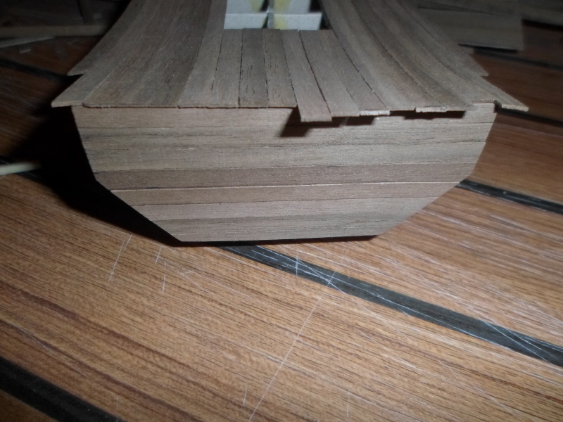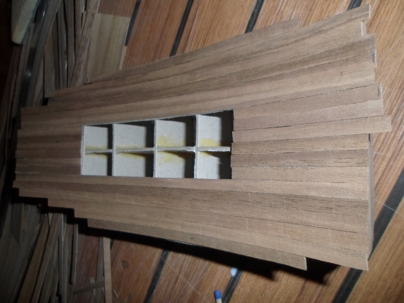 Wiem że zacząłem od "tyłka" strony. Tak samo źle powycinałem paski, miały być tej samej szerokości na całym kadłubie.