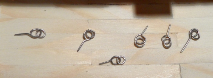 Bloczek wykonany z bukowego pręta ф6mm zeszlifowanego z dwóch stron i przyciętych na odpowiednią szerokość. Otwory pod liny ф1mm.