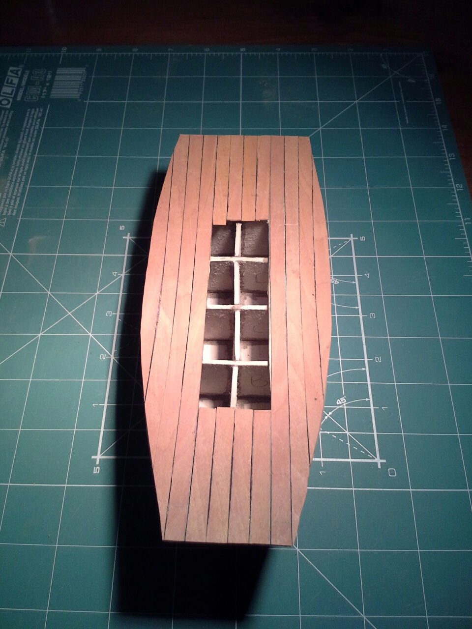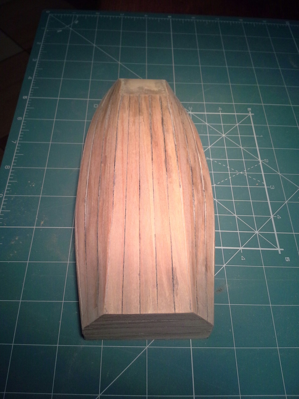Kończąc model Endeavour II, posłuchałem Waszych rad i rozpocząłem "prawdziwą naukę" od dżonki. Nie zamieszczam, zdjęć szkieletu, bo były robione na szybko i z lampą błyskową. Relację zaczynam od etapu sklejonego kadłuba. Kolejny etap to szpachlowanie wymuszone nierównościami przy dziobie, a potem fornirowanie.