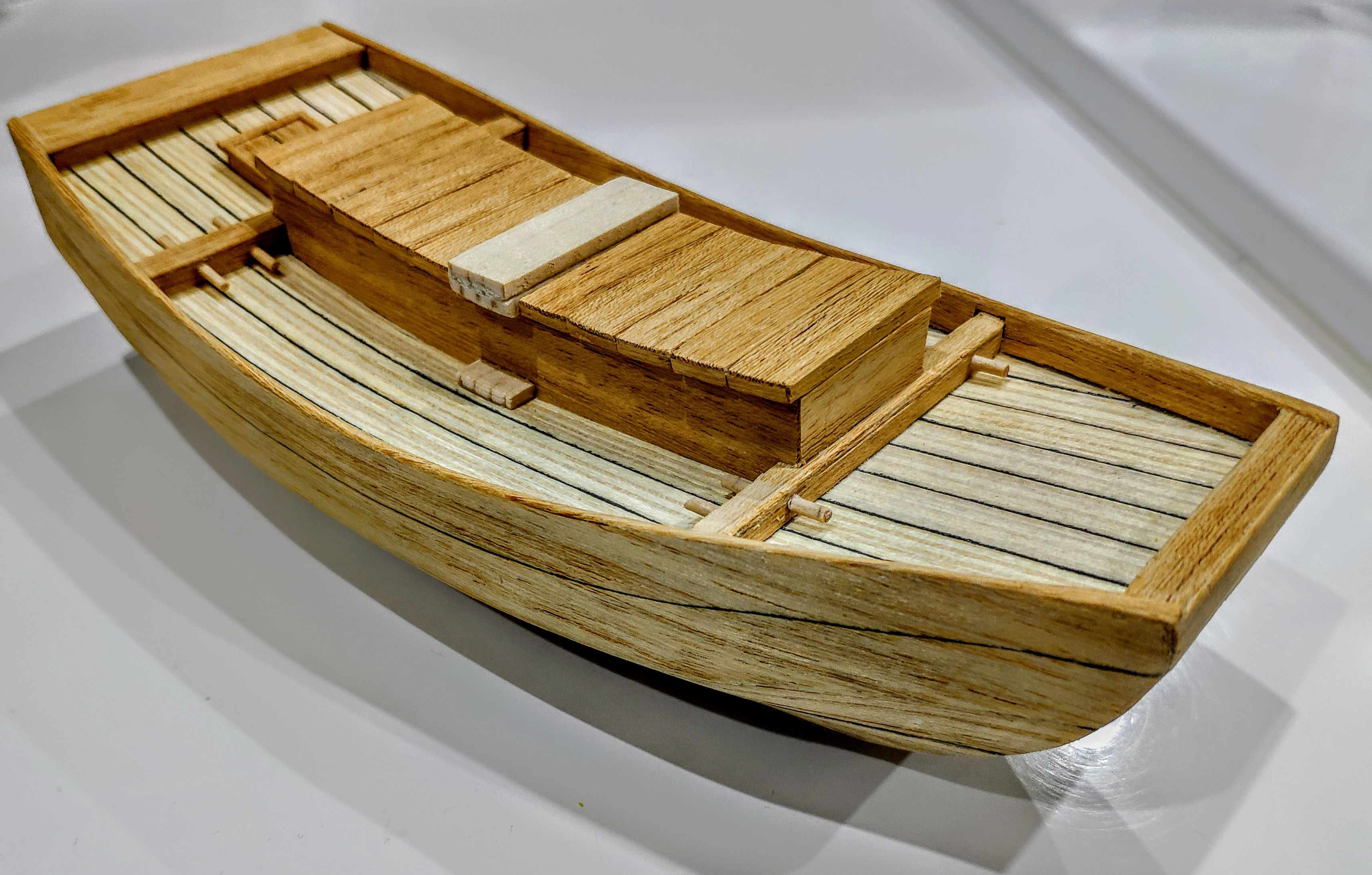 Poszycie gotowe zaczynam pokład i tutaj sobie wymyśliłem podwójne burty co jest bardzo precyzyjną robotą i czasochłonną a najtrudniej będzie z 3 mm paskiem forniru dookoła pokładu na płasko by połączyć boki burt. Zobaczymy jak to wyjdzie