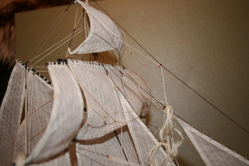 Po dość długich zmaganiach z nićmi, batystem oraz maszyną do szycia ( chociaż nie jestem krawcem ) ale w wielkich mękach udało się uszyć żagle.