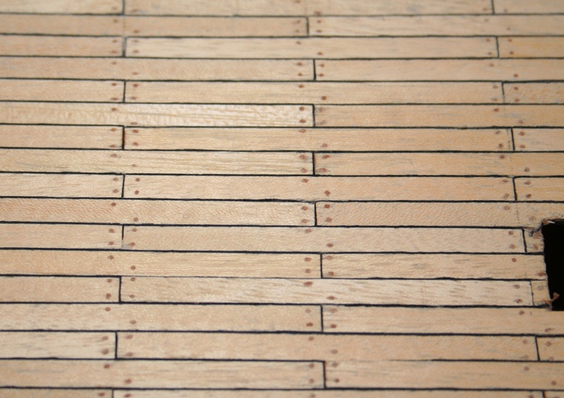W końcu pokład został zakołkowany drewnianymi kołeczkami o średnicy 0,5 mm.