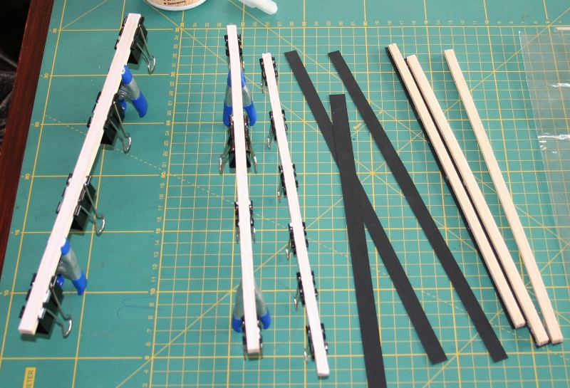 Następnie arkusz forniru w Moim przypadku Klon - grubość 0.6 mm tnę na deseczki o szerokości 5 mm następnie składam w pakiety po 10-12 szt. Po jednej stronie smaruję klejem ( bardzo cienka warstwa) i przyklejam kawałek czarnego bloku technicznego ( dostępny w każdym papierniczym). Po wyschnięciu pakiety tnę na 7 cm kawałki i do jednego z boków przyklejam skrawek czarnego papieru. Pozostaje już tylko pakiety rozciąć żyletką.