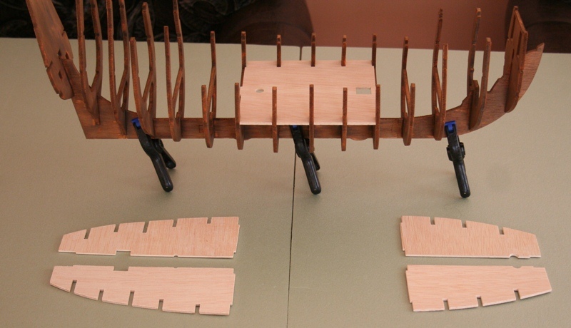 Deskowanie pokładu robione jest z forniru 5mm x 7 cm