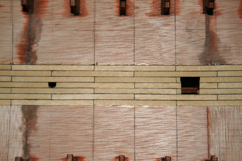 W końcu pokład został zakołkowany drewnianymi kołeczkami o średnicy 0,5 mm.