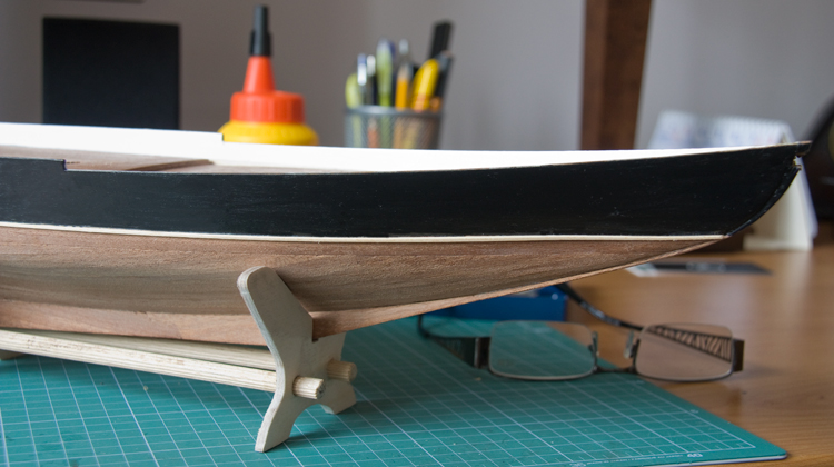 W tej chwili mam kadłub przygotowany do położenia drugiej warstwy poszycia i zrobione parę elementów wyposażenia pokładu.