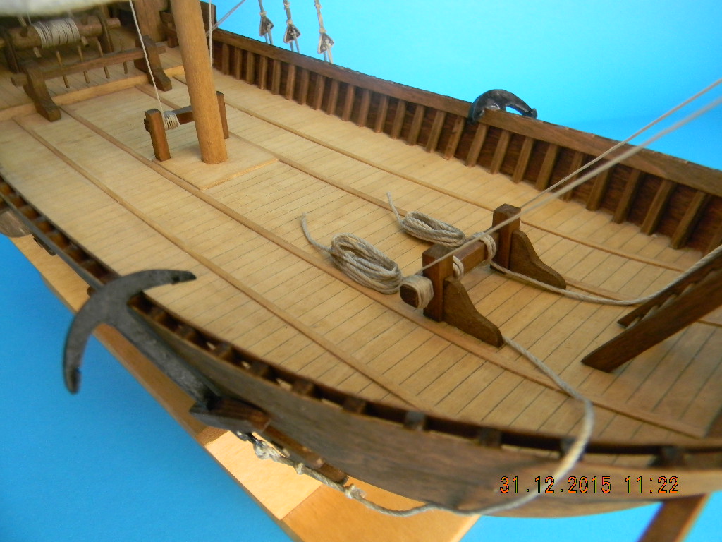 Skleiłem drabinki do obydwu kaszteli, pachoł kotwiczy oraz imitację wystających belek wręgów ramowych.