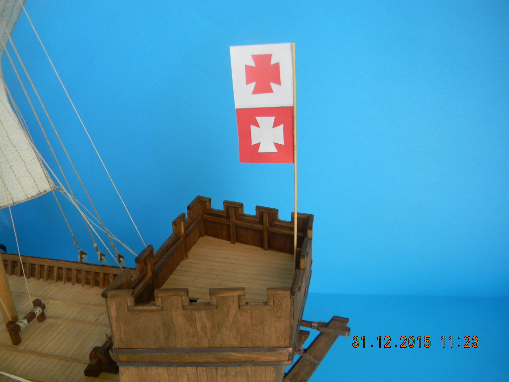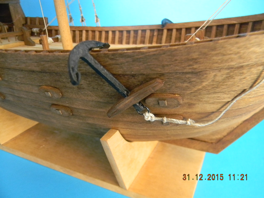Skleiłem drabinki do obydwu kaszteli, pachoł kotwiczy oraz imitację wystających belek wręgów ramowych.