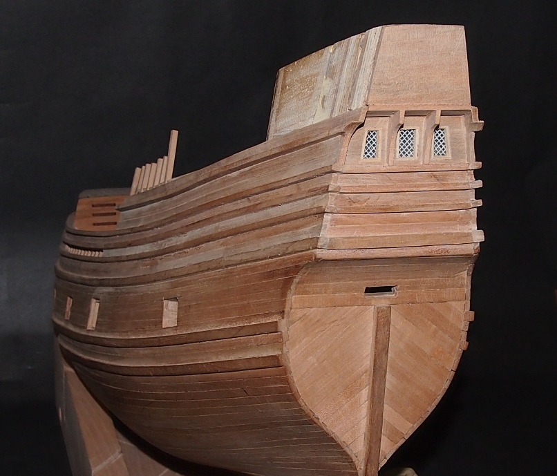 Dalszy ciąg prac - tym razem okna rufowe i pomału pnę się w górę z poszyciem- a co za tym idzie - coraz mniej widocznej sklejki.