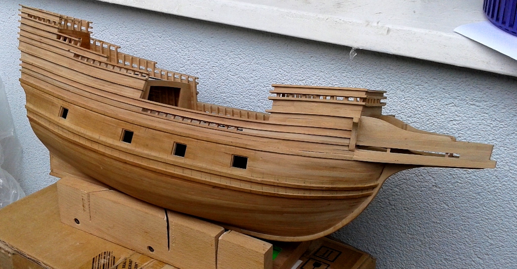 Miło mi poinformować, że w końcu zakończyłem etap, gdzie po sklejce i tym co pod spodem nie ma już śladu. Czyli dokończyłem poszycie i kołkowanie kasztelu i pnę się w górę i oby tylko sprzyjał wiatr ;)