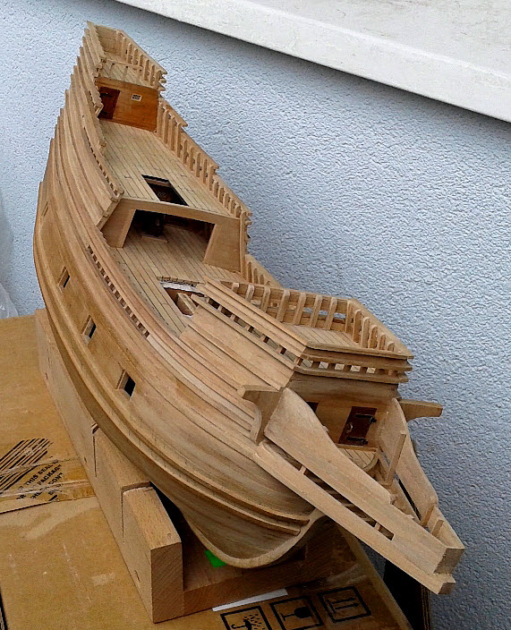 Dziób prawie skończony, jeszcze brakuje kompletu wsporników i w niektórych miejscach podszlifowania.