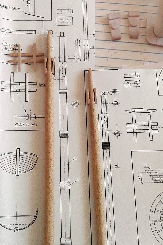 Tym razem odbojnice już pomalowane tuszem oraz przymiarka masztów i podstawki