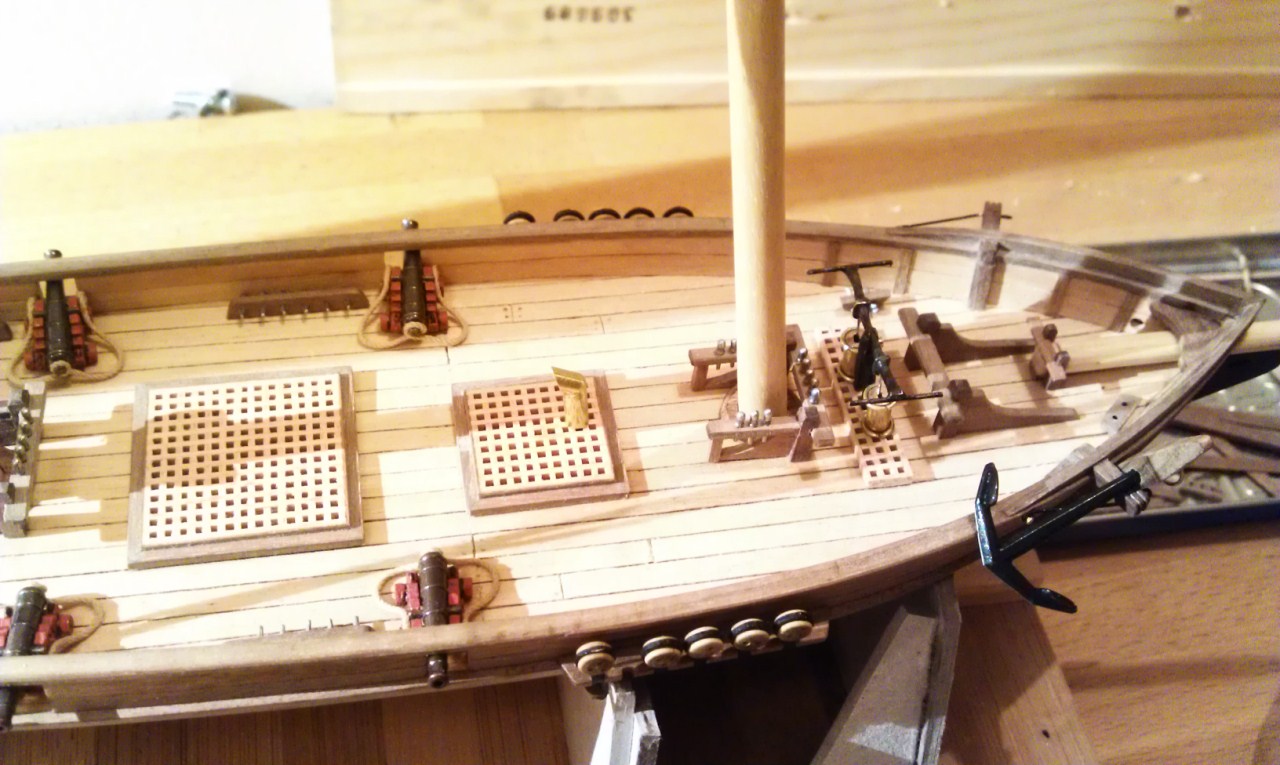 Aktualnie prace są na etapie wykonania detali wyposażenia pokładu. Dopóki nie będę miał wszystkich elementów gotowych nie będę niczego przyklejał chciałbym być pewien że wszystko będzie z sobą dobrze współpracować.