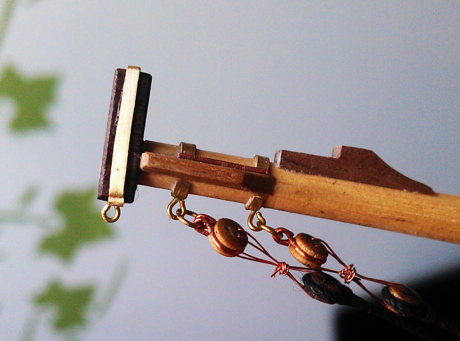 Pracuje nad bukszprytem wstępnie złożyłem go do kupy. Wykonałem okucia, watersztagi, i upewniłem się co do przebiegu olinowania ruchomego. Teraz rozkładam, maluje lakieruje, dopieszczam i biorę się za fokmaszt.
