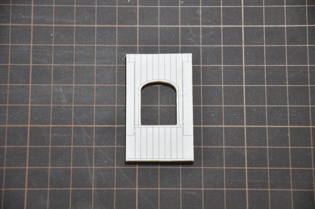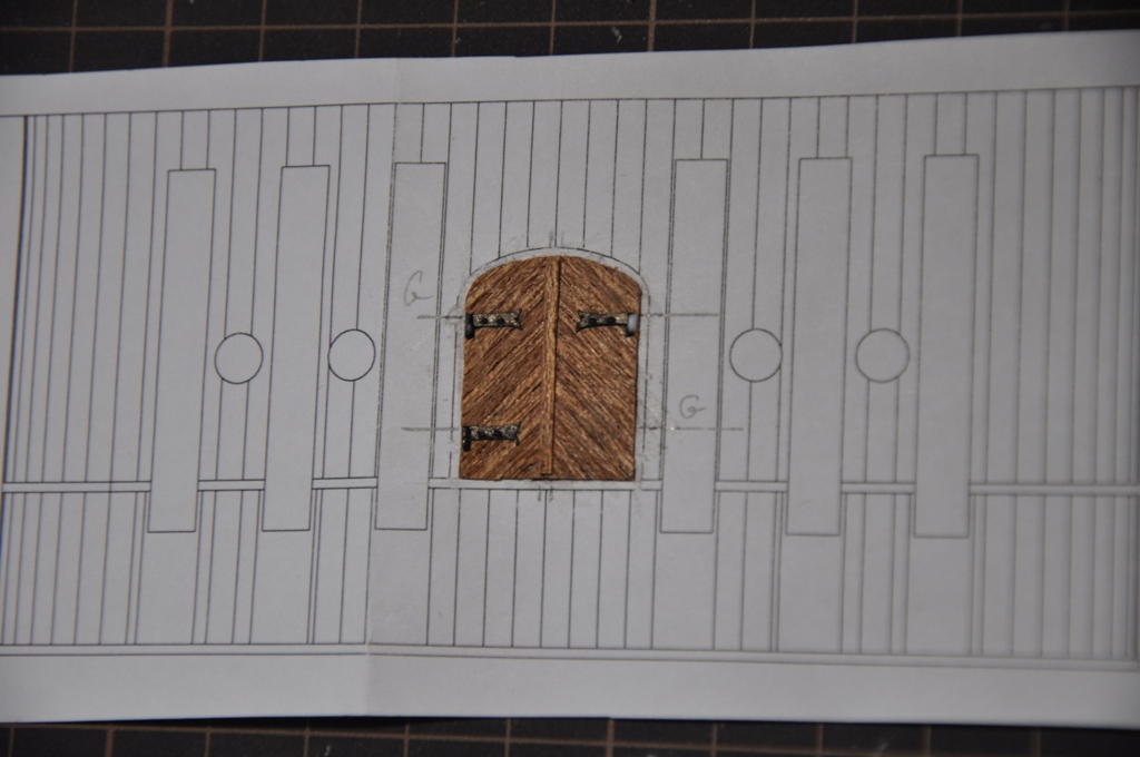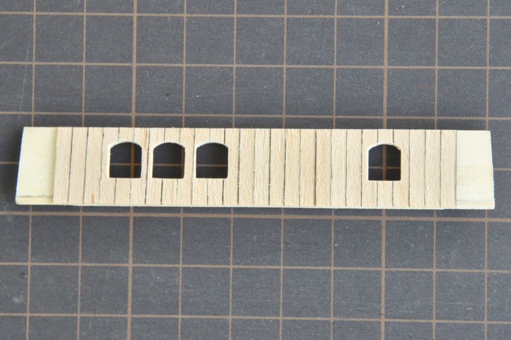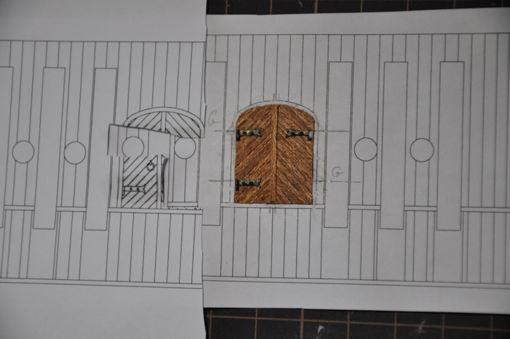 - oklejenie ścianki "deskami" i poczernienie ich (boczne deski wkleję po zamontowaniu ścianki na modelu)