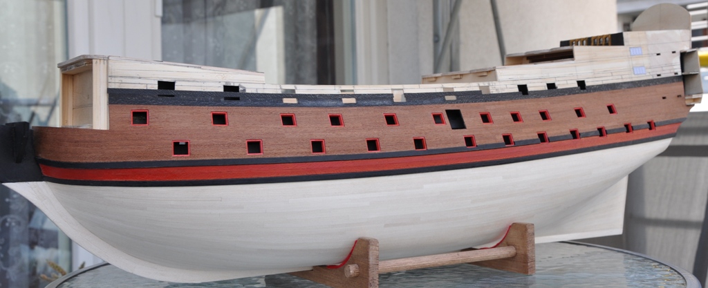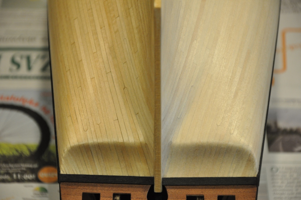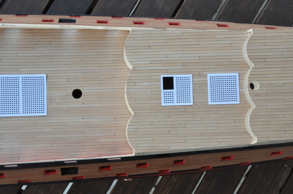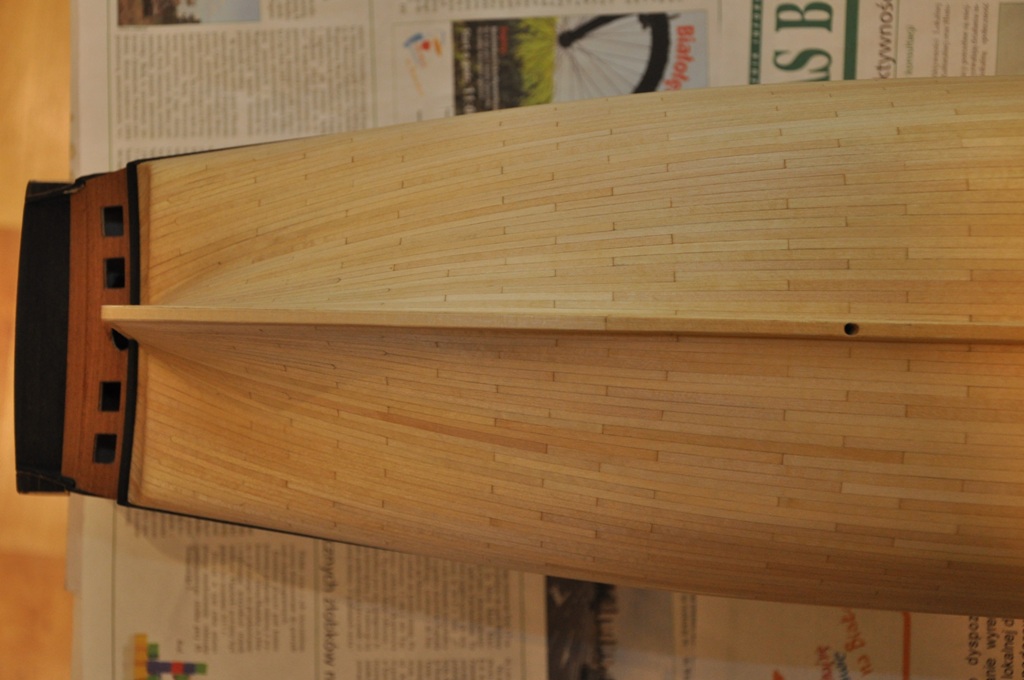 No właśnie (wiem, nie powinno zaczynać się tak zdania), masz rację Ryszardzie, w sumie sam zauważyłem, że taki układ okien robi wrażenie jakby "leciały", patrząc na cały model może tego tak nie widać ale na powiększonym zdjęciu już bardzo rażą. Niestety nie posiadam planów i robię podglądając wszystko i wszystkich co znajdę w internecie. Po niedzieli poprawię projekt na okna, gdzie dłuższe krawędzie będą równoległe do bocznych galerii, a boczne prostopadłe do linii wodnej (pierwotnie zasugerowałem się kształtem jaki zaproponowali w DeA)